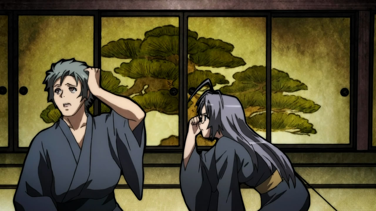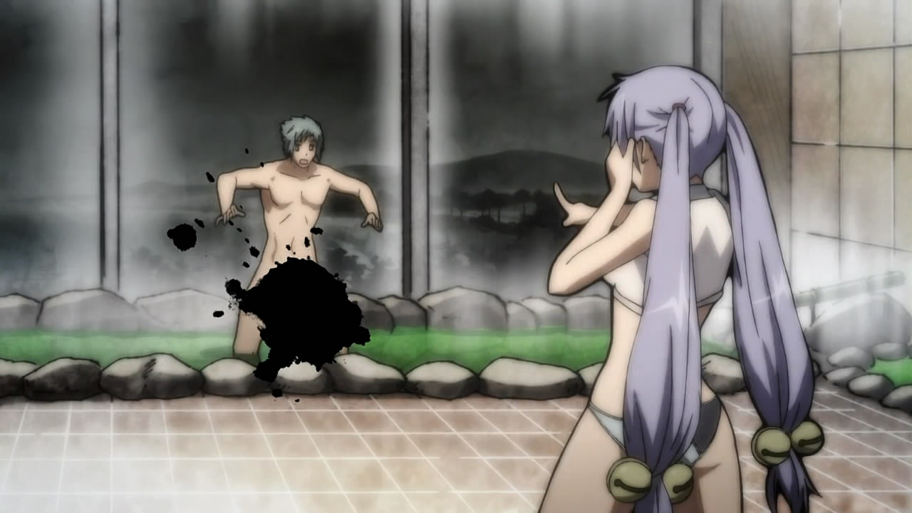 this episode was very funny 🙂 have to admit that I was caught off-guard by the soap… lol…it seems that Jubei still transform on a incomplete form of contract or the sort… poor MuneakiraBut Jubei is probably still the strongest among the three…can’t wait for more plot… though the comedy is very welcomed 🙂