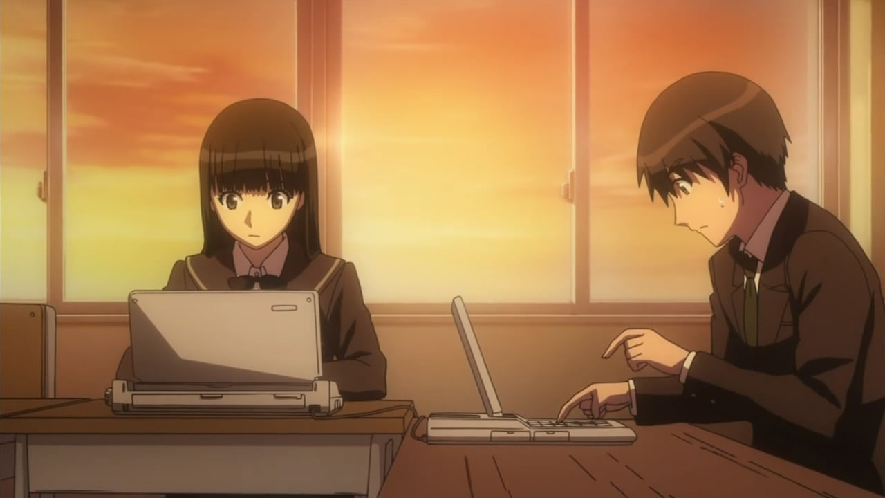 Damn, why did she interrupt Junichi’s Hibiki fantasies. 🙂 At least Tsukasa herself is cute with all her personality changes and the arc looks very promising.Also, seems like their school has some really old laptops http://images.randomc.net/Amagami%20SS/Amagami%20SS%20-%2022%20-%20Large%2017.jpg can’t have been any made like that for the last 5-10 years to my knowledge…