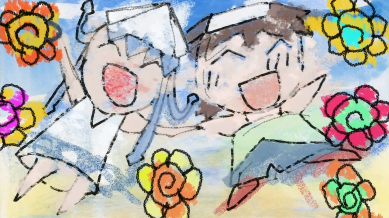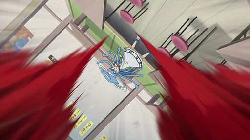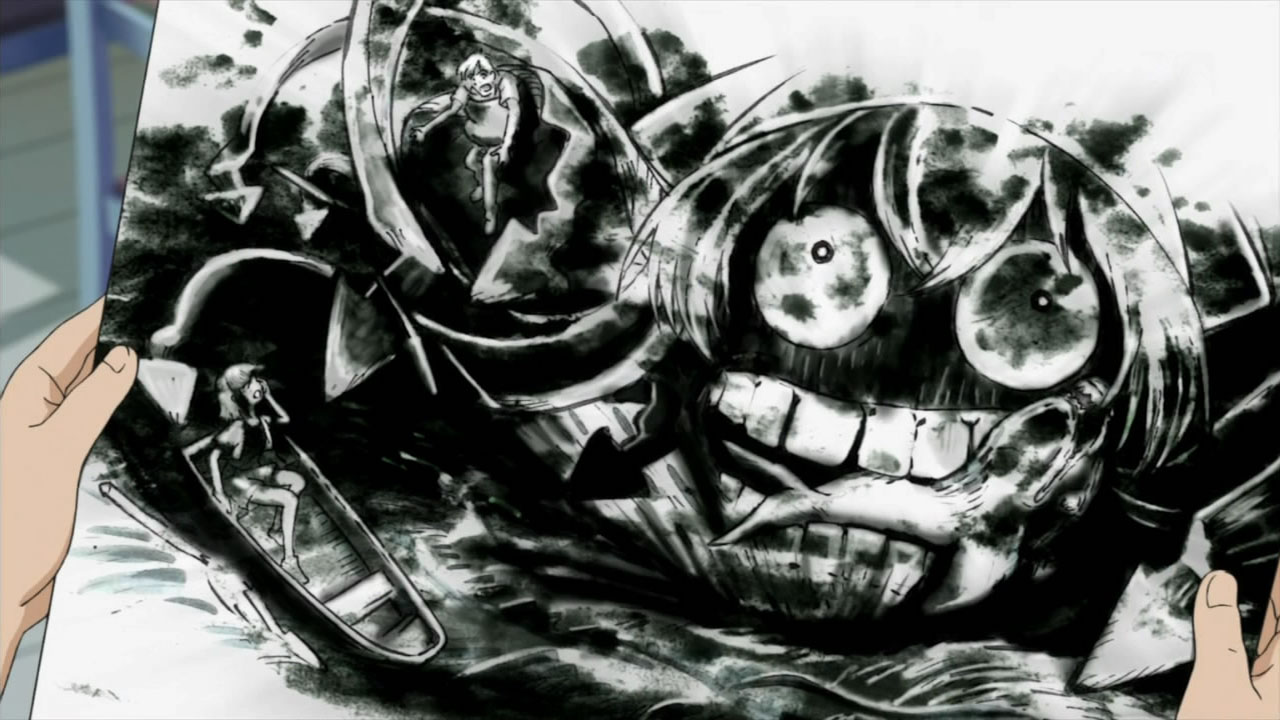 Well, I guess this explains the traumatic-like fear Ika has of Chizuru and why there was a one-eyed robot version of Eiko back in episode eight. I just love how Gorou’s defining feature to Ika is his swim cap, since it’s reminiscent of when she couldn’t discern Takeru from a fellow squid person when he had a paper hat on. Nagisa on the other hand will forever be an angel in her eyes, which is pretty ironic considering that she just wants to prey on her fear. As for Sanae, I can see the whole creepy clingy part of her resembling zombies, but she also capable of booking it at high speeds after Ika. Last time I checked, those kind of undead abominations don’t come flying at you like Sanae does.