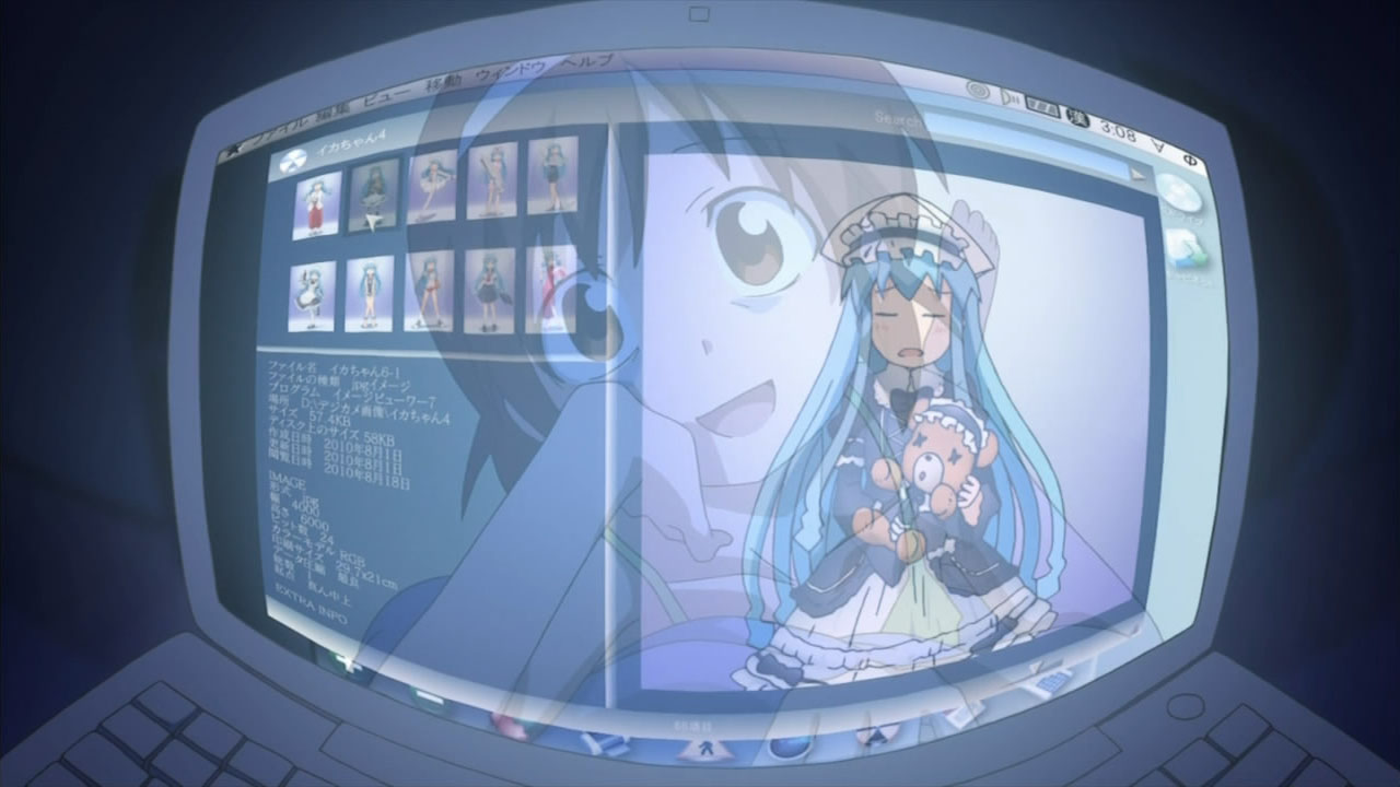 The fact that Sanae burned her collection of Ika Musume’s cosplay pictures means that she has to start all over again from scratch. Man, I almost feel sorry for the squid.