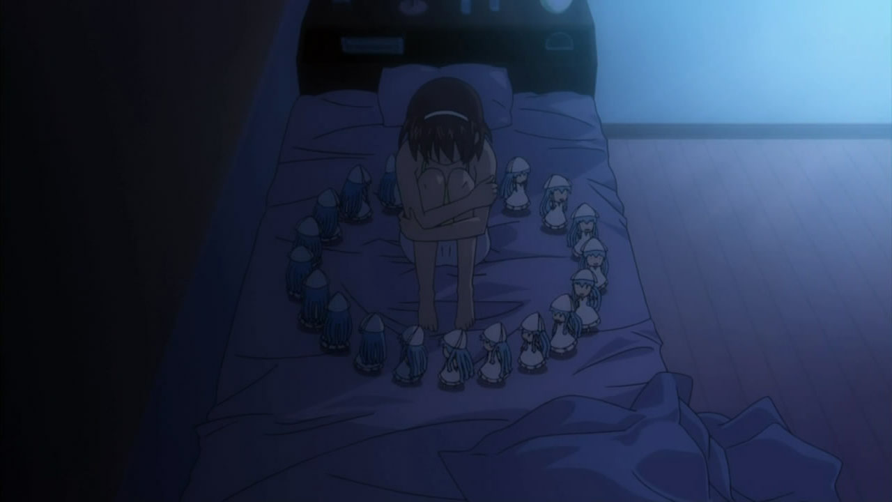 I swear I wanted to run after all those Mini Ika-Musume! HNNNNNNNNNNNNNNNNNG!!!I really did feel sorry for Sanae, the withdrawal and the hallucinations but like you said, D, it was for the best…Alas, it didn’t last all that long!Holy crap, we are getting close to the end of the season and I’m also feeling withdrawal syndroms if I don’t get a fix of Ika musume (Oddly enough, I passed by my Japanese store and felt guilty looking at the dried Ika….)