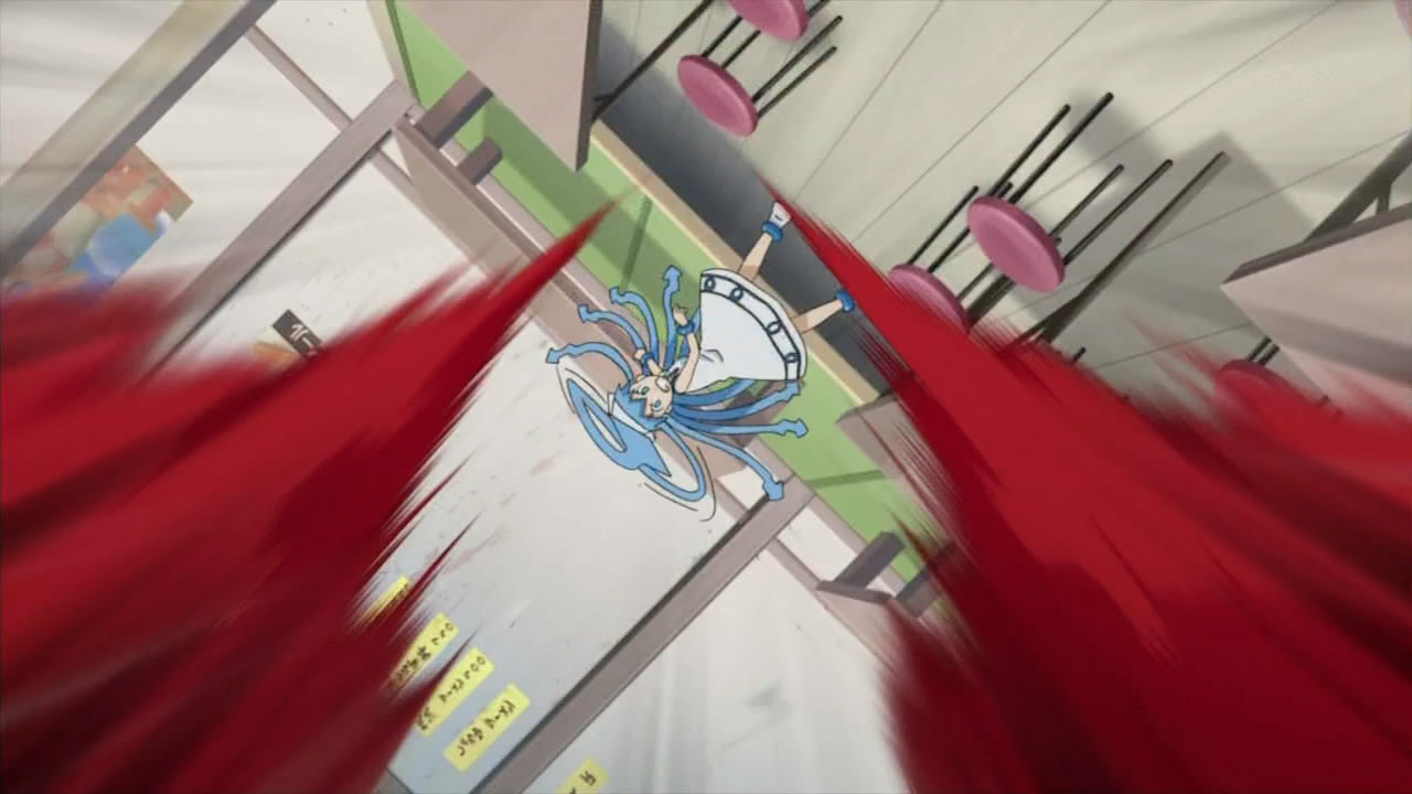 While baseball isn’t my sport of choice, I always look forward to how it’s portrayed in anime since it’s absolutely huge in Japan. The preview from last time had me really looking forward to this skit, and it delivered when Ika offered to fill in on Kiyomi’s club and found herself at odds with the opposing team’s ace Tanaka (Komatsu Mikako). Much like the first skit, Ika’s true potential wasn’t realized until she let her tentacles come into play, after which it was a completely different ball game.