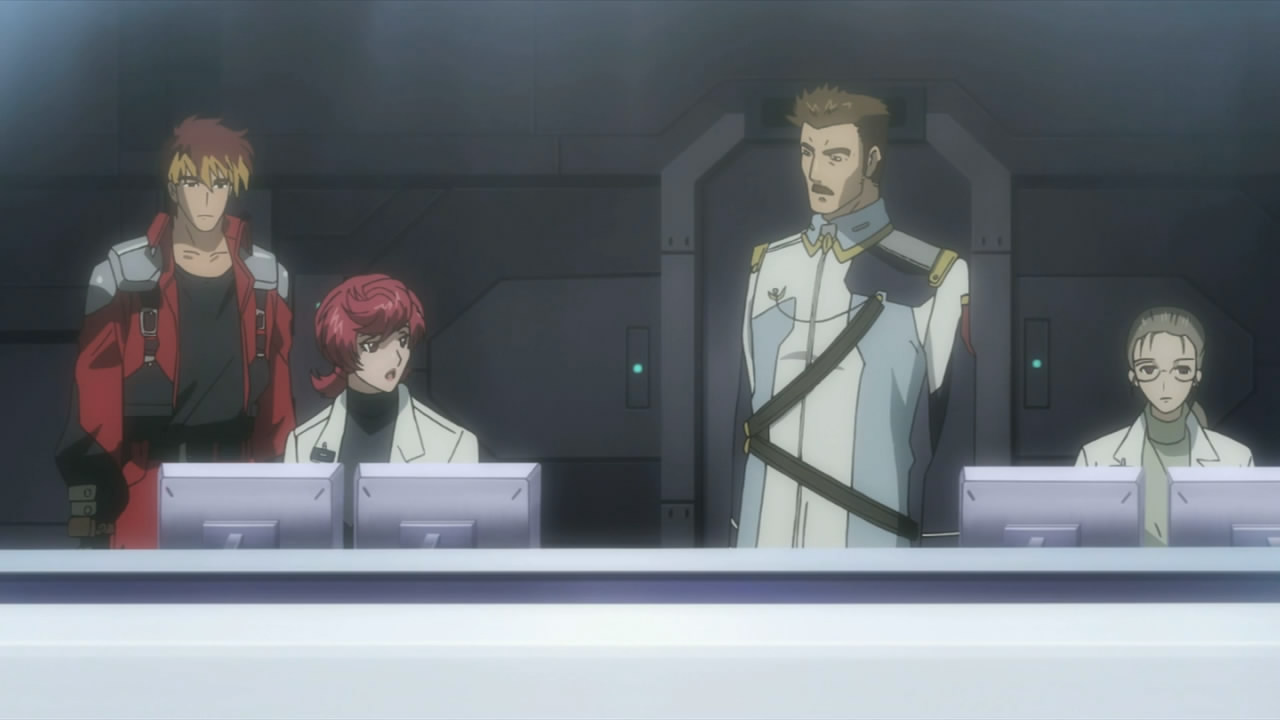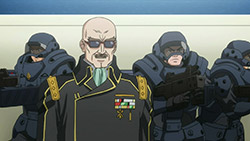 After all the crazy battles, it’s somewhat refreshing to get a dose of the game’s intermission side of things to set the stage for the upcoming battle — Operation Plantagenet. It’s the codename for the plan to retake North America from the Inspectors, except it comes with the added twist that it’s in cooperation with the Neo Divine Crusaders. They say your enemy’s enemy is your friend, but I’m not so sure that applies when your enemy’s enemy is your enemy as well. In any case, it’ll be interesting to see how that pans out, now that Graien Grusman (Kanemitsu Nobuaki) has taken over the Earth Federation and put it under military rule with the help of Kenneth Garret (Takaoka Binbin). At the moment, it looks more like a coup d’tat than simply invoking martial law, regardless of whether the higher-ups decided it was the best course of action to defend Earth from the alien threat. This of course is more on the political side of things, meaning that the trickle down effect to our protagonists remains to be seen.