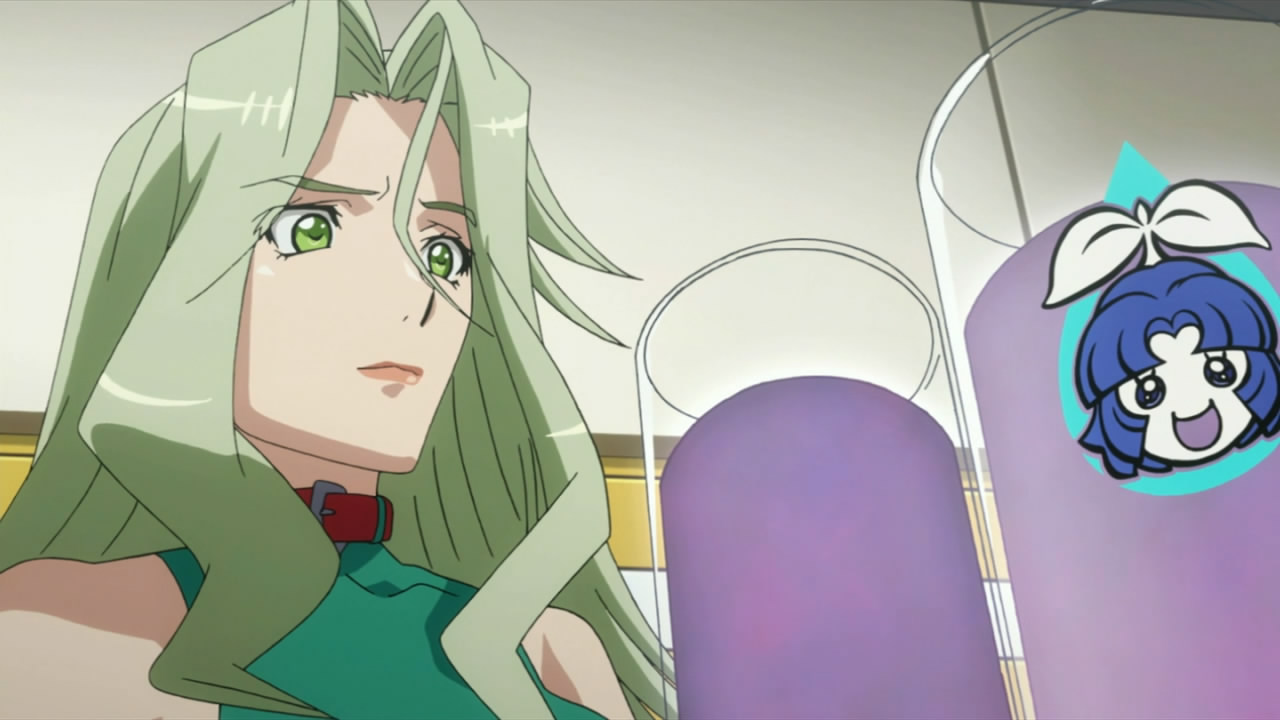 Other than that, recovering Mai (Orikasa Ai) from a Judecca fragment and mention of the T-LINK Twin Contact System has me looking forward to seeing SRX in action sometime in the near future. Surprisingly, the fact that Mai somehow managed to survive burning up in the atmosphere at the conclusion of the L5 Campaign was glossed over for the most part. Instead, the story simply reiterated that she’s still suffering from the brainwashing that she was subjected to by the Aerogaters before she was made the core of the White Death Cross mobile weapon. There was brief mention that Ryuusei and Rai still don’t know that she’s alive, so it’ll be nice to see their surprise when Aya decides to let them in on the news.