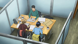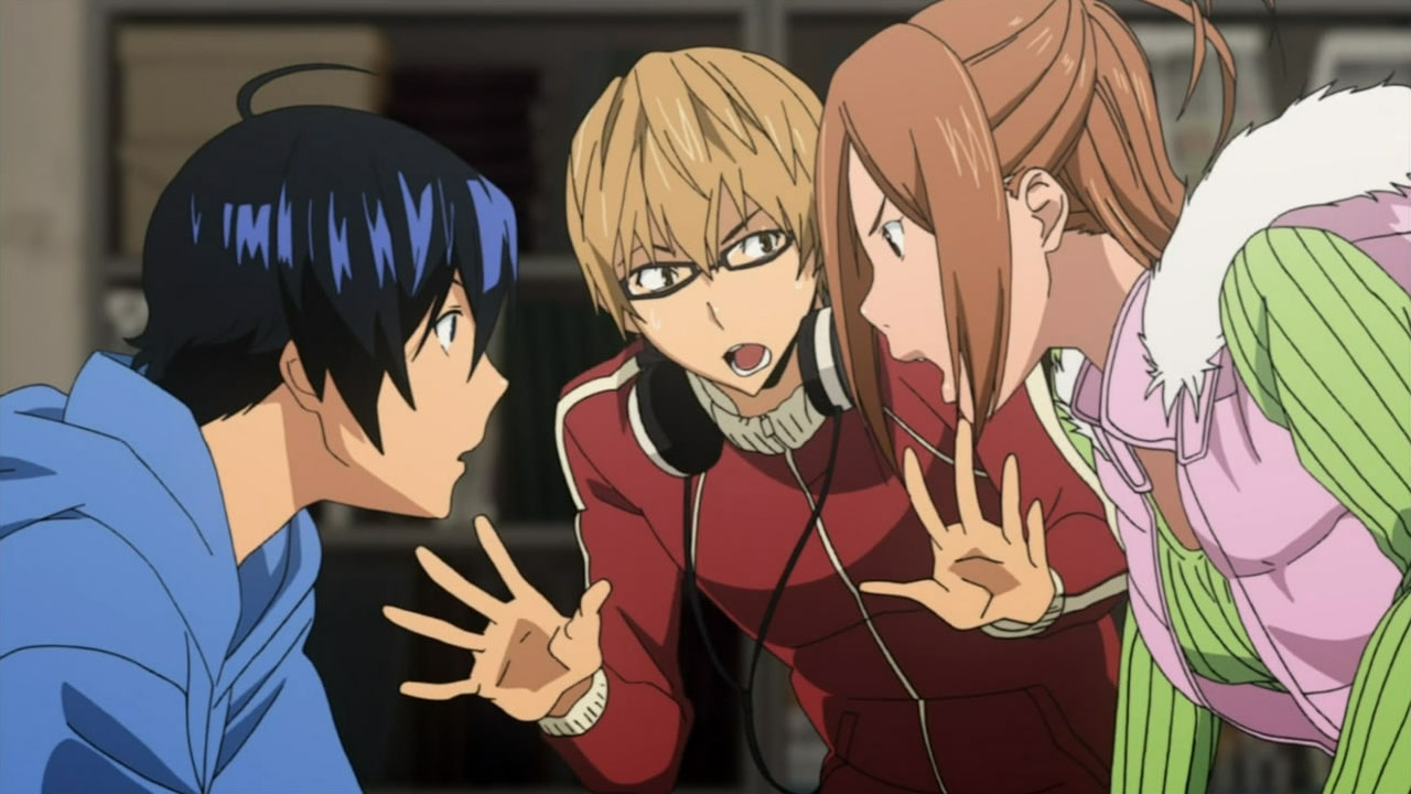 Getting back on the topic of Money and Intelligence, Im glad that it looks like our duo has a pretty good chance of winning the Shounen NEXT competition. As Hattori started listing the different genres that our duo is up against, it looks like Nizuma will be able to pick off the competition leaving a one on one against our duo. As Hattori started getting into the editing groove, it was pretty interesting watching him explain in detail, panel by panel, each and every small problem that our duos name had. Further proving my point about how dedication he puts into his work. From the problems in the dialogue to the flaws in the art, it looks like our duo is in for some major revisions. Is it just me or does everyone at Hattoris workplace seem to be looking down on him? With the end of the season upon us, I cant wait to see how Bakuman decides to end it next episode. I hope that Money and Intelligence gets its own full blown page by page with dialogue like their first manuscript did. Plus with a new season comes a new opening and ending sequence. Im excited!