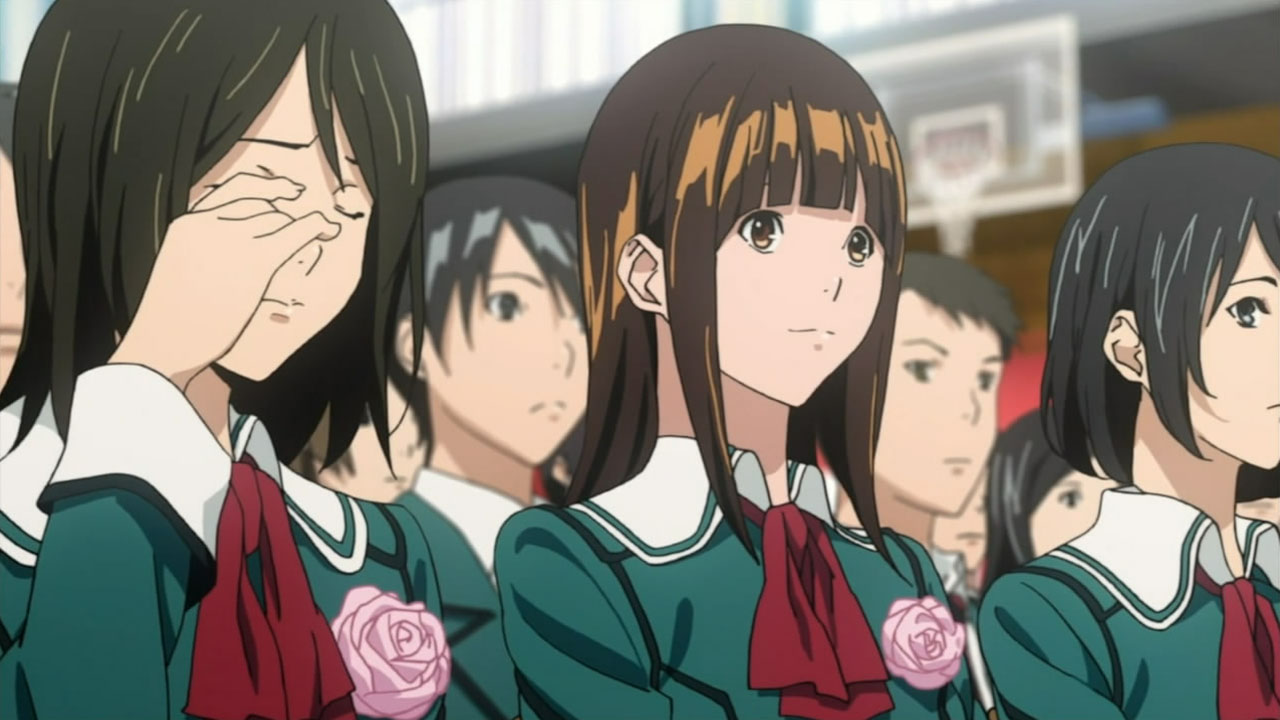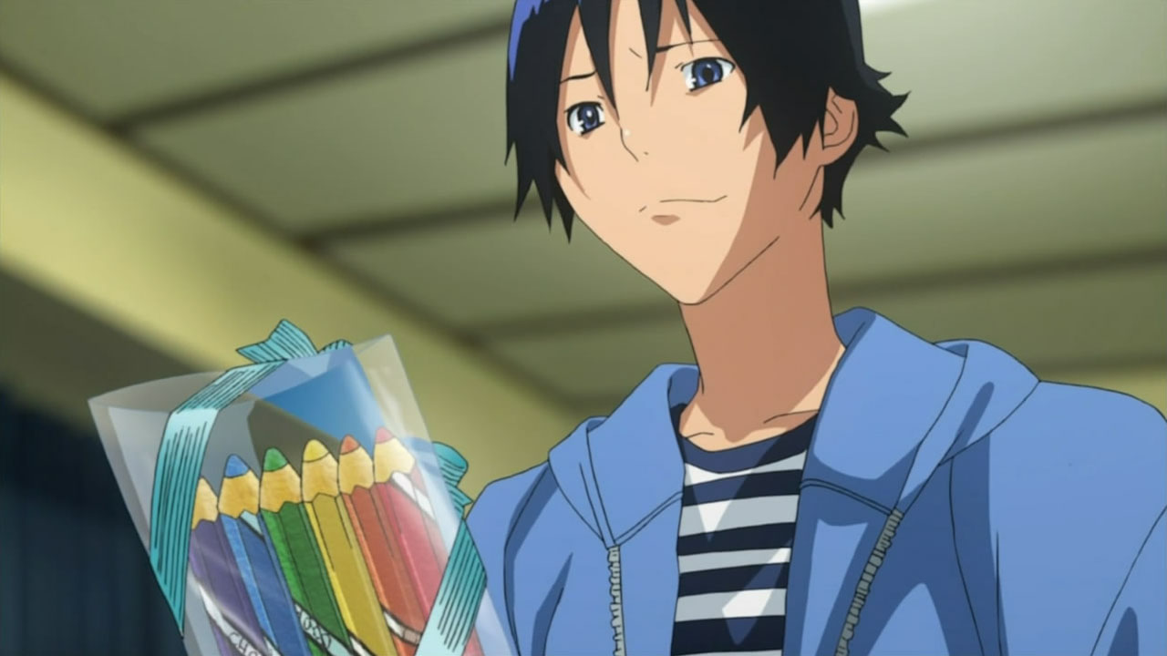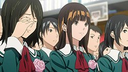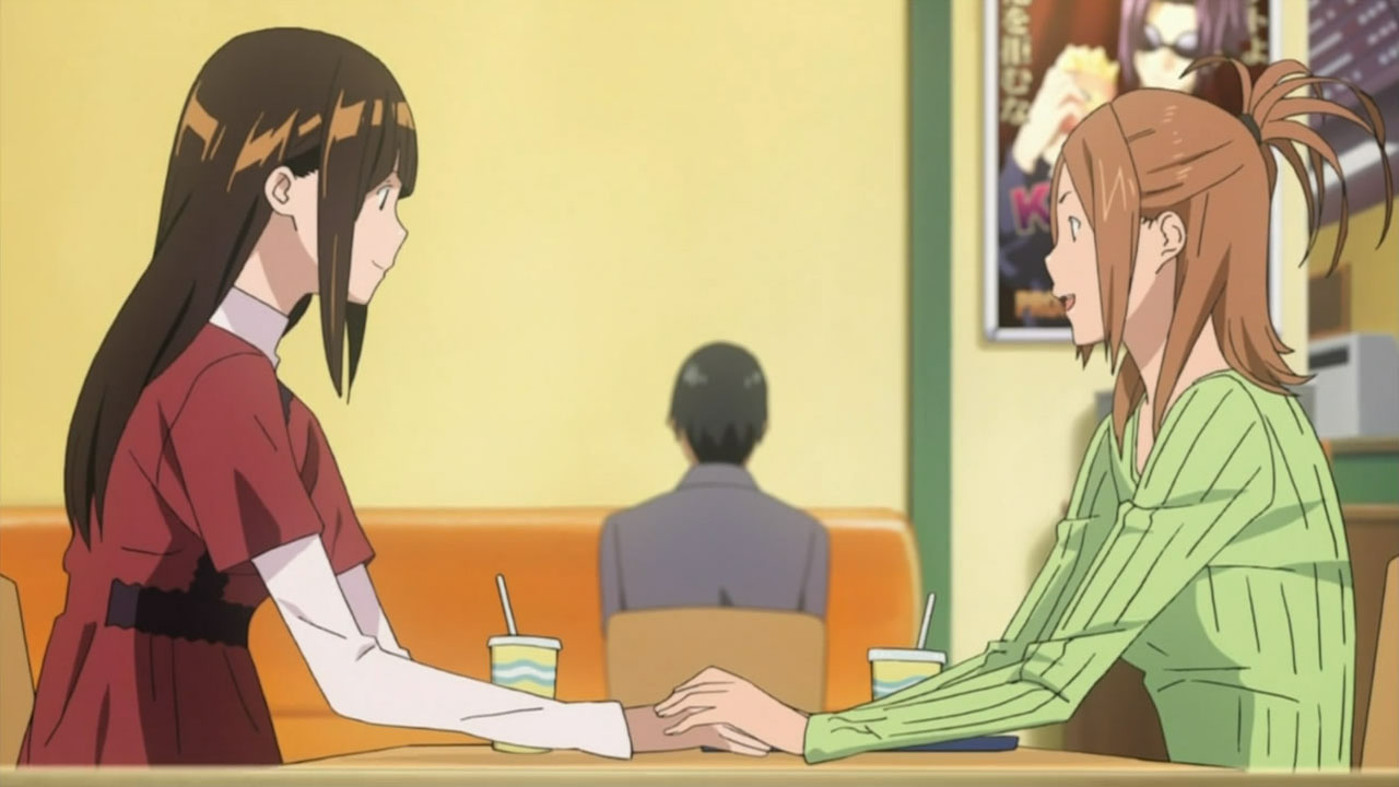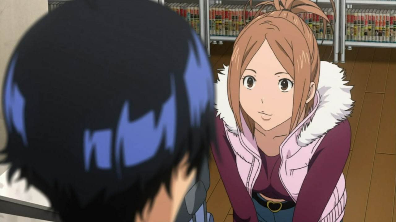 While Bakuman still seems to be following one to one and a half chapters per episode, it feels like things are finally beginning to speed up. Putting the manga things aside, I really enjoyed how this episode focused on the relationship between Mashiro and Azuki. With Kaya in the picture, it was nice to see a normal girls perspective on the matter. With Mashiro fading into dream land and Takagi being almost too understanding about everything, its interesting to watch Kaya question everything about Mashiro’s relationship. While it is true that our awkward couple want to take their relationship slow, Ive been wondering how Mashiro actually feels inside watching Takagi and Kaya constantly be with each other. Which is why I found Kayas attempt to force Mashiro and Azuki closer together really sweet. Going off of her intuition that not seeing Azuki is probably getting to him, she starts talking to Mashiro about how he handles Azuki. Getting to the point where tempers starting flying between the two about who actually understands Azukis feelings better. Looking on the bright side, its the type of fight that get’s both parties involved to open their eyes a bit wider – in this case widening Mashiro and Kaya’s understanding of each other. Its tough to describe the feelings that must have been flowing through Mashiros mind while he was slumped in his chair after their argument, but I think I know where hes coming from. All too clearly did the memories of being slumped up in a chair, looking at the things that made me remember my girlfriend the most, wondering about the future, start rushing back to me. In Mashiros case, Im glad that hes depressed not because of a fight but because of his desire to be with Azuki. It makes me proud to see him so focused on getting serialized just to spend time with her. Im also really surprised that after such a depressing moment he sprung right back up and started working just as hard with a smile on his face. All in all, Im glad that through the power of teamwork (or love?) Takagi and Kaya managed to get Mashiro and Azuki to finally talk to each other. Even though they only exchanged a couple words, they were pretty good ones – as Mashiro asks Azuki how long shell wait for him, her reply of I’ll wait forever was quite touching.
