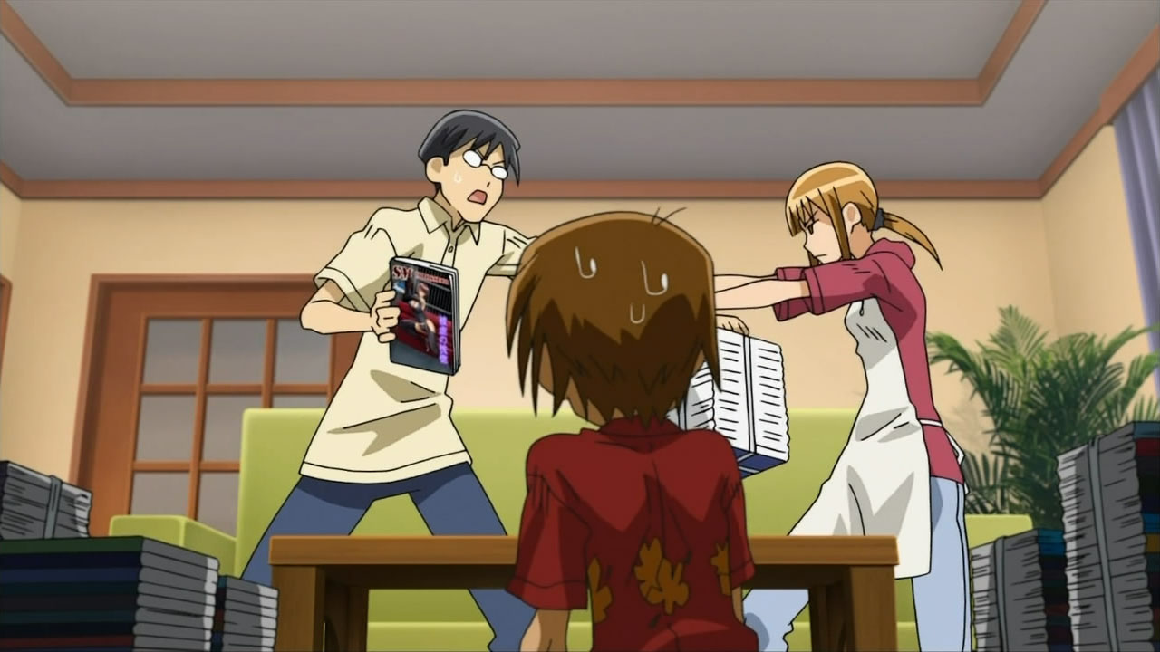 The manga sorta sickened me (stopped reading somewhere after the childhood friend/nutter showed up), so I doubt the anime will be my thing. I remember this ep from the manga, though … funniest character was the dad when he decided to ‘confiscate’ his son’s porn (no idea if the anime showed that bit or not)