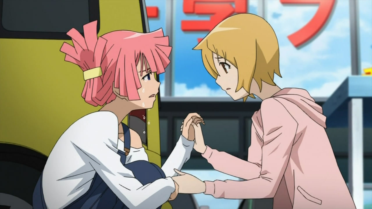 Yes, I’m so proud of you Star Driver producers! You pulled it off! You actually pulled it off! You made an episode full of yummy plotstuffs and didn’t throw in a battle sequence! Yes!I was actually curious as to what would happen if Mizuno actually tried to leave after her alarm clock broke instead of meeting Wako. How would the barrier have pulled her back?And I thought Marino disappeared like three times this episode. Grrr camera movement. Or strange magical being born from Mizuno’s emotions instantaneous movement. Grrrr.