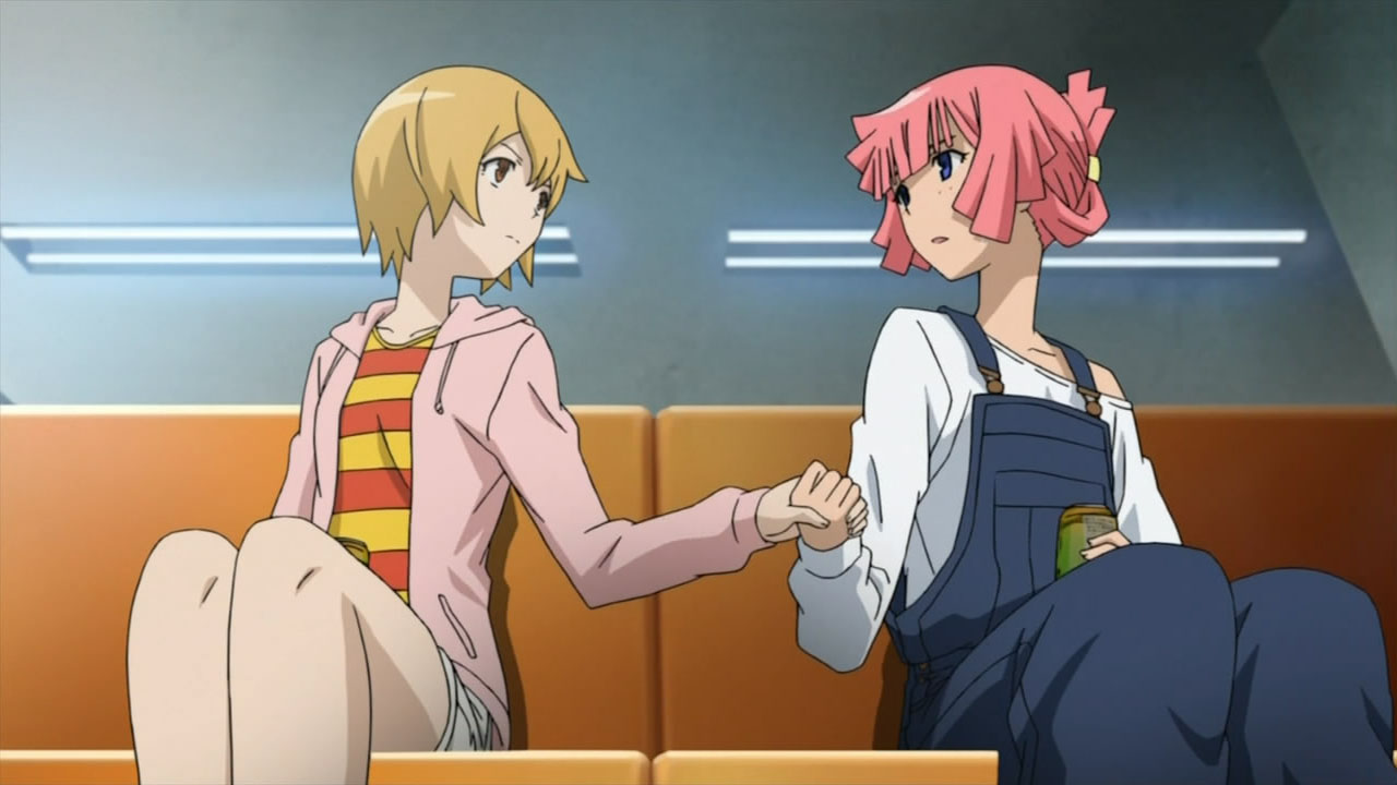 HEY GUYS! aren’t the two newly shown VANISHING AGE MEMBERS, the one w/ the yellow and blue hair gals as shown in the new ED, the ones shown back in episode 3 as shown talking w/ Kanako in the monitor about stocks or something. i’m very sure of this i think.