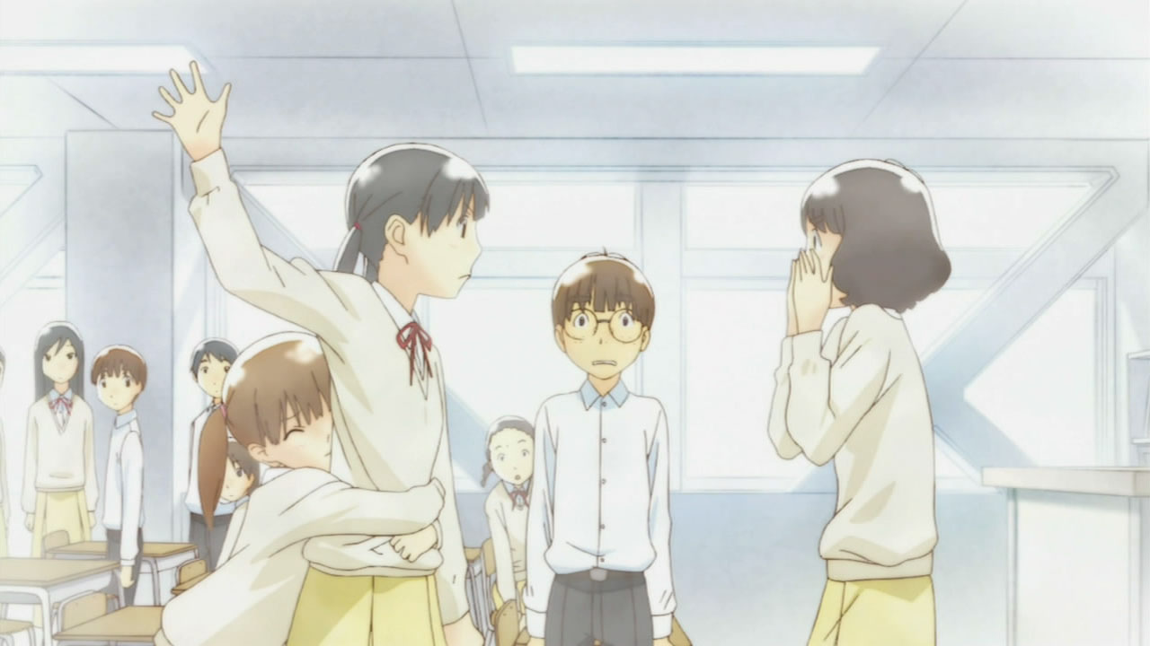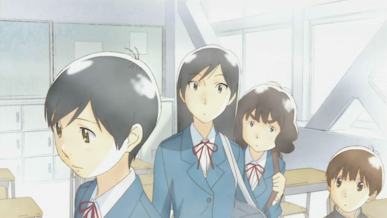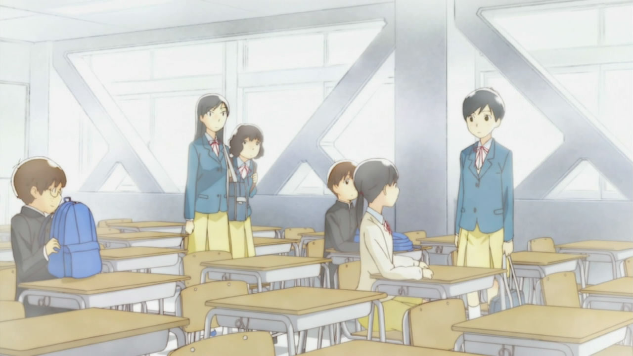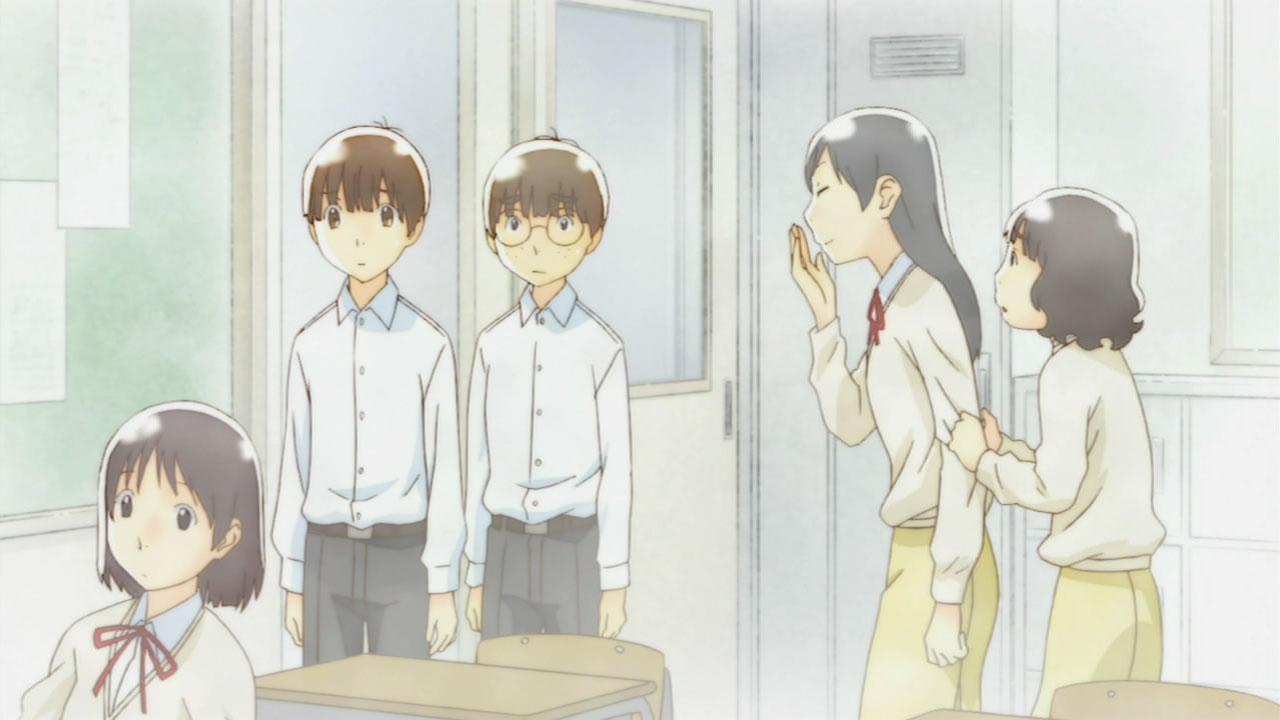 I don’t know if beginning with a faux interview will be a trend, but it helps set the focus, and may be the adaptation’s way of dealing with several grades being skipped. A flashback was employed, but both scenes were pretty brief, so I’m going to assume AIC’s just going to bring up relevant information when necessary. Throwing us in the middle of a story was a gamble, but the plot holds up, stays coherent, and issues arise with a little mystery to them.