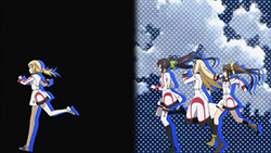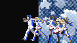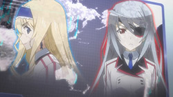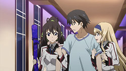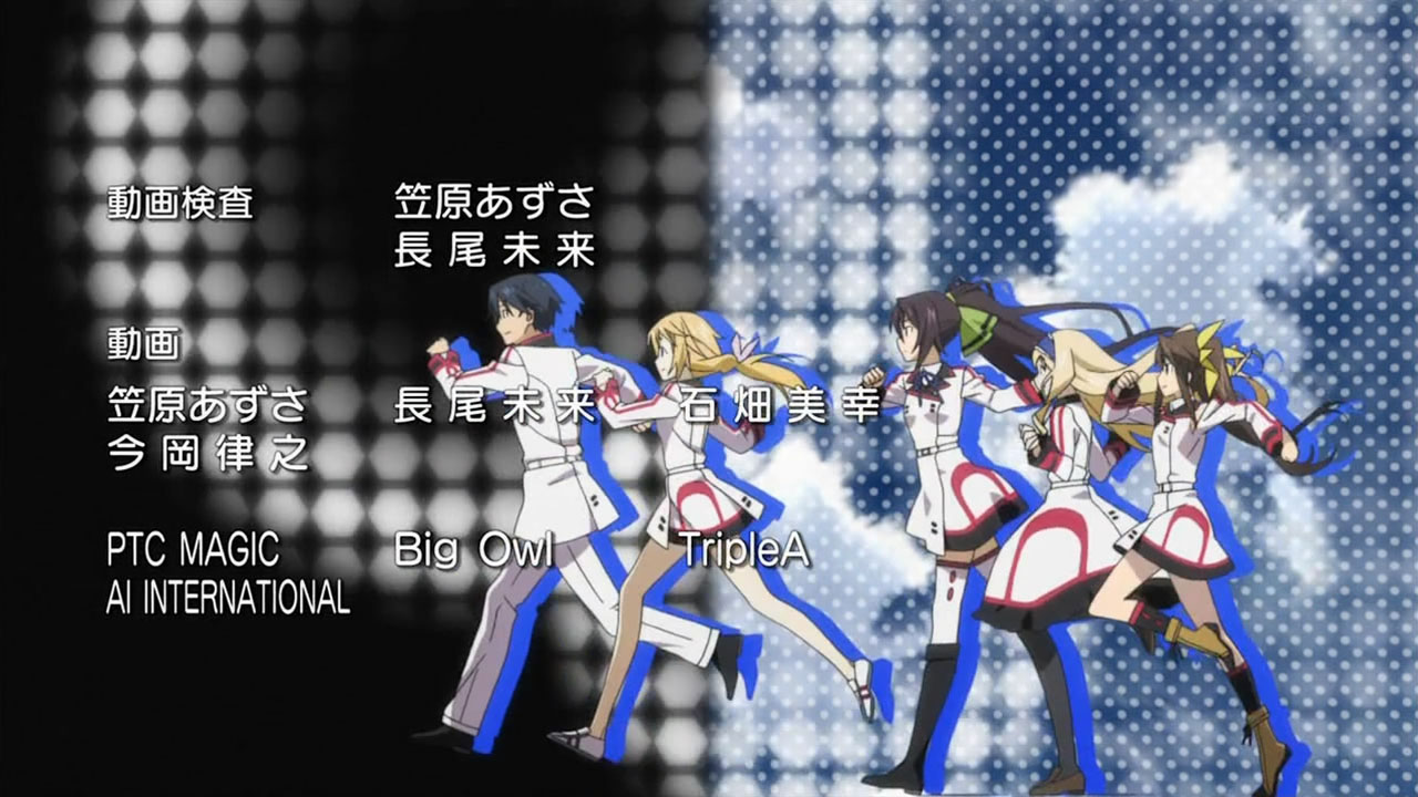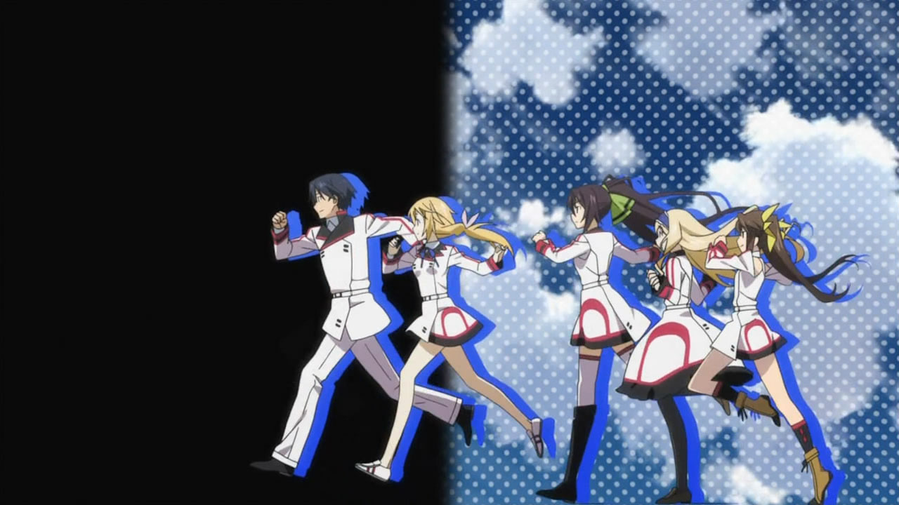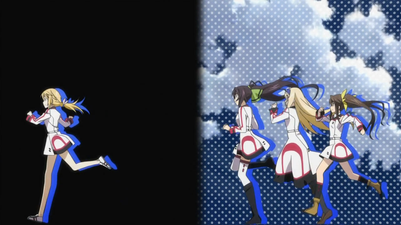 The ending sequence sure is getting crowded with Charlotte joining the running (…for Ichika’s heart). It comes with the bonus of seeing her in a female uniform with a skirt, which I doubt we’ll be seeing in the actual show since Ichika promised to keep her true gender a secret.