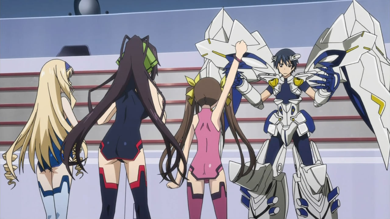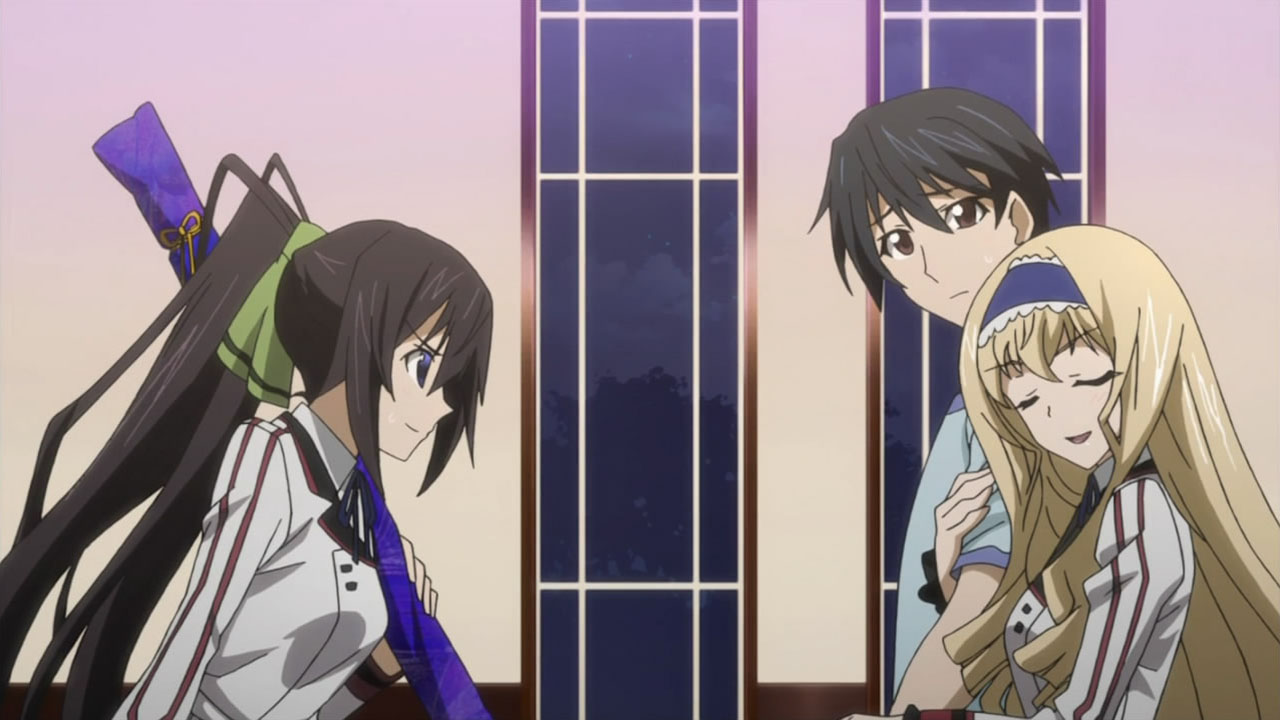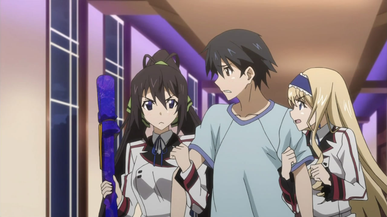ichika is probably one of the most dull characters for me. he isnt skilled in handling IS and doesnt really show a good reason for having a harem.at least the other characters who are weak train hard and have motivation, most of the time he only seems to be lucky. characters who generally dont train and have motivation are at least skilled enough to keep up and fight evenly with elite, or being able to beat them easily. outgoing and relax guys like him should be a bit more competent in battle, he handled cecilia, a girl with a relatively normal gun shouldnt be that hard. at the very least he should not be defeated that easily unless he was caught by surprise.I hope he will get better in fighting and also show how he easily gets girls, he gets them too easily. harem leads like that should at least be a bishonen or have a really kind and thoughtful personality. though he did show some bits of that, he needs more good moments that show how he attracts the girls.and I was really hoping for some yuri even just a bit…