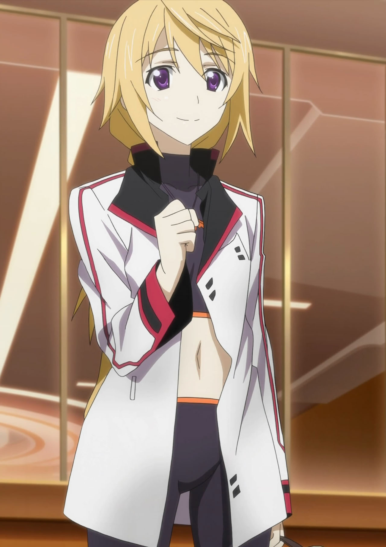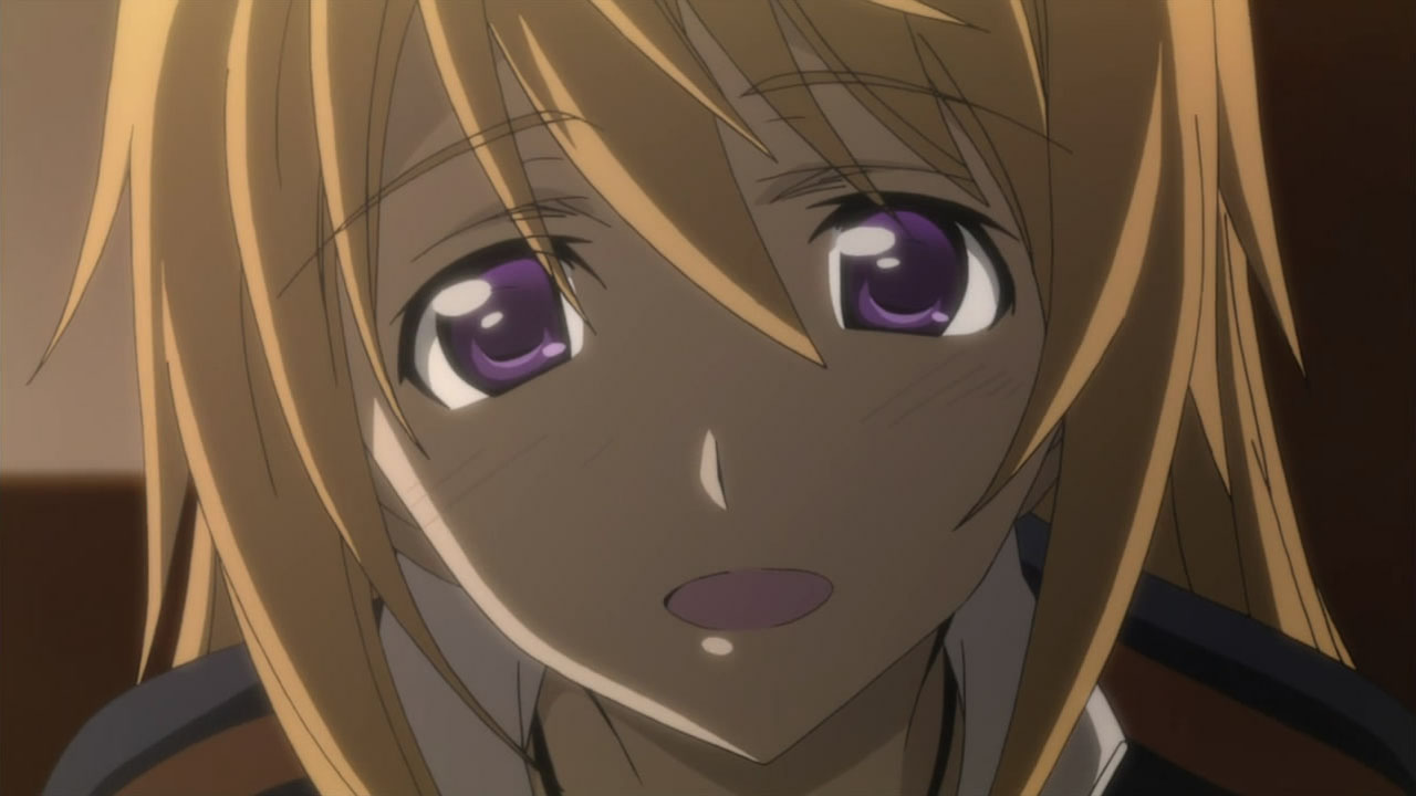 A few spoiler stuff…(I hope the tags work)Most scary thing about Charlotte is, even with tons of her moe moments in this episode, she is not done yet.Next she proves she is a extremely clever and skilled pilot, and her skills can actually make Ichika really shine when she is with him. And I guess she still has a few more moments of her in the series… And the boobs…Charlotte’s battle suit has special function which makes big breasts real flat and look like muscles. At least that what the original novel has to explain the sudden “Boobs boost” of her.The French obviously should have spend more time for development of new generation IS than the damn suit. As for Charlotte’s girl uniform,She is too good a person and too honest to keep lying on her true gender. So she tells the truth to the teachers, but they surprisingly accept her “coming out”, no expulsion or no punishment whatsoever. She shows up in the class as a girl, then moves out of Ichika’s room and starts to share a room with Laura