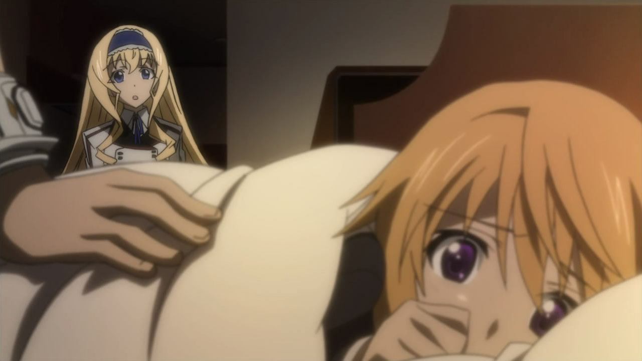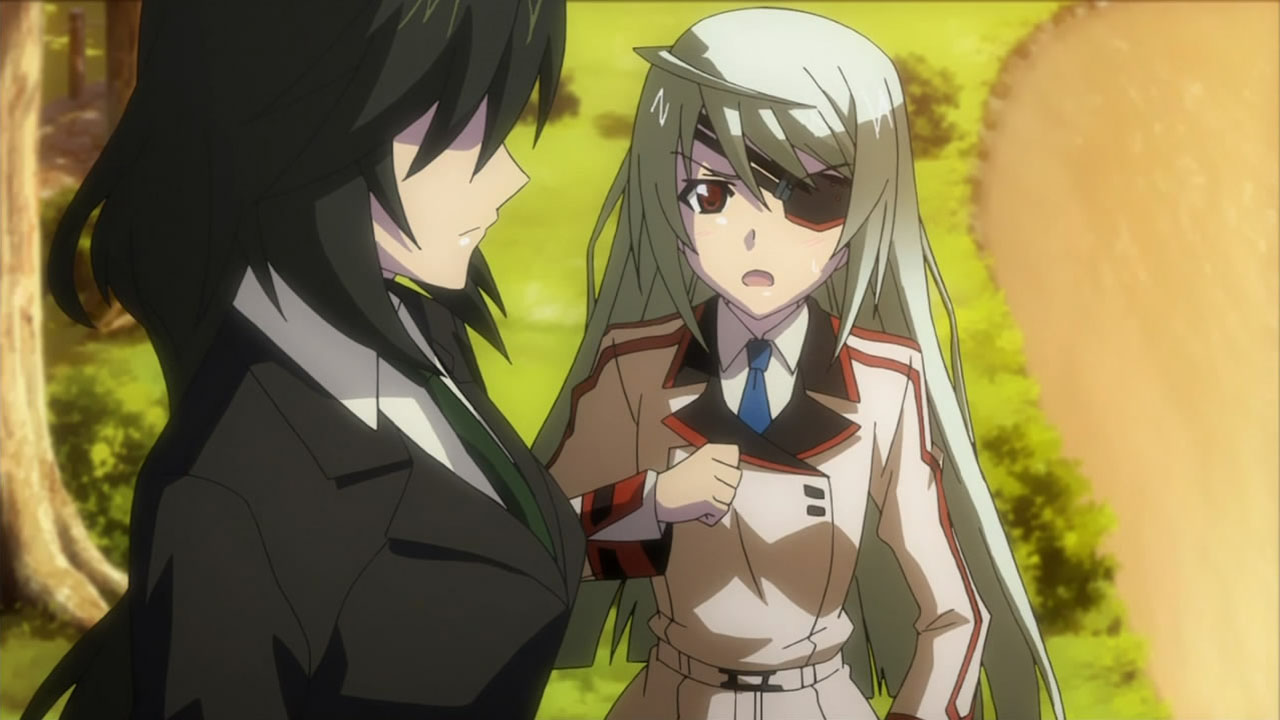 In the series’ defense, it’s probably difficult to avoid falling into that formulaic trap with five heroines, as the focus continually shifts to the next one and pushes all the previous ones to the sidelines for the time being. The other girls are just screaming for attention… and some screen time. However, what did irk me this episode were all the misguided feelings of guilt and hate from Ichika and Laura respectively. In Ichika’s case, I don’t really understand why he’d blame himself for getting kidnapped and Chifuyu choosing to save him instead of defending her championship at the second Mondo Grosso IS tournament. Did he expect himself to be able to fight off his kidnappers? Also, for all he knows, the whole thing may have been staged by the Germans themselves to coax Chifuyu into training their army on how to pilot an IS. It seems rather convenient that Ichika wasn’t harmed, the German army knew exactly where he was, and Chifuyu didn’t run into any resistance rescuing him.
