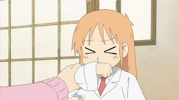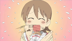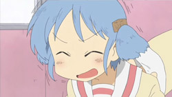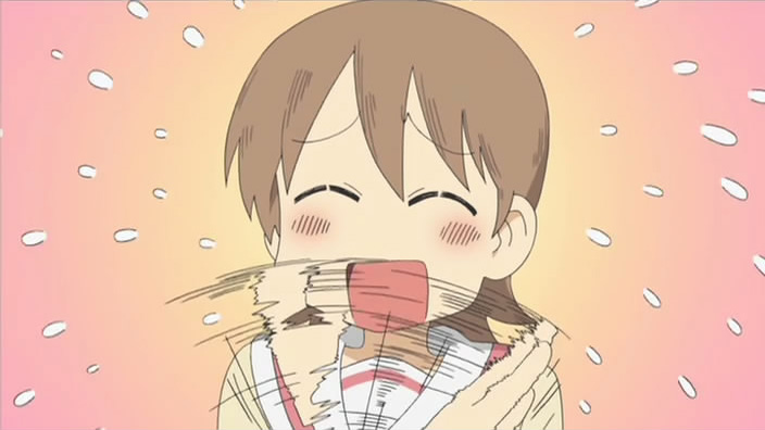 It can be argued that the “moe” KyoAni utilizes is with fairly innocent notions. Think about it, people love babies because they’re cute, and KyoAni is pretty much taking that attraction and marketing it. Hakase attempting to eat a pill and failing because she didn’t take water was so cute I could die, but I don’t have to feel guilty because it’s somehow “pandering.” K-ON proved successful because it could appeal to a wide variety of audiences, including adults and females, being a family friendly series. In that aspect, it’s not a bad thing. Does that mean it’s a great thing for them to keep on marketing moe? No, I think it’s a waste of their superb adaptation skills, because I’m hankering for some actual storyline, but beggars can’t be choosers.