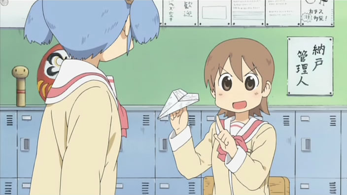 “However, most of the first skit became boring after the first 5 minutes, and while the second skit was better, the subject matter was a little juvenile. Third skit was just wtf, but thats the best thing Nichijous got.”Basically what I thought, though I found the follow up reaction on the paper airplane bit of it to be quite a laugh.Hopefully, the rest of the episodes start to show more of the weird stuff that it advertised. (eg. Principal wrestling with a deer)