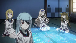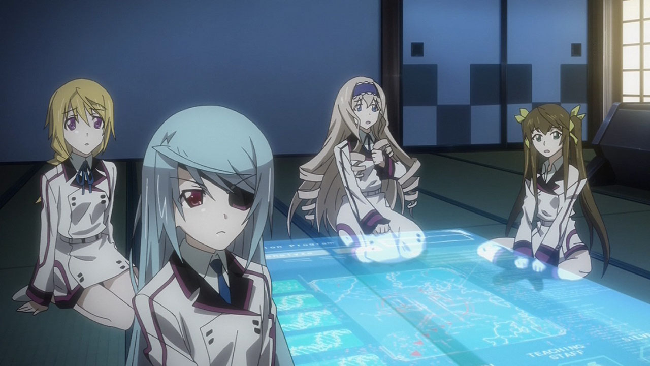 I was a bit disappointed how the Newtype stuff came out of nowhere. We don’t see anything that hints about the “Houki doesn’t like weak people” character trait before this, but it somehow becomes a major plot point that Houki regrets for the rest of the episode.A large part of it is simply due to the compressed scale inherent in a twelve-episode series. In a longer-run series, it would have been better to draw things out, and have Houki sit it out for at least an episode to ram things home. But instead, as quickly as she decides to no longer pilot an IS, she changes her mind. And Ichika doesn’t spend that long in recovery.Basically, the plot came out of nowhere, then aside from the fact that Ichika is still injured, disappeared just as quickly with Houki deciding to pilot an IS again.
