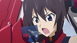 A fast, long-range danmaku IS, versus two melee (though why Houki wasn’t blasting off her sword beams, I have no idea) units. As long as it keeps its distance, they’d never beat it….which is such an obvious flaw in the plan that I’d question the decision not to send everyone in from the beginning, but it’s a character development plot device, so whatever.