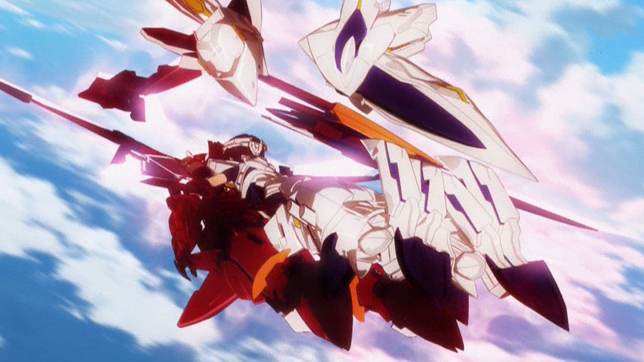 Like me, a lot of Super Robot Wars fans are still waiting to see some real men “ride one another”, but in the meantime, Infinite Stratos provides its own take on that suggestive idea with Byakushiki mounting on top of Akatsubaki. Mecha fans can rejoice, because the IS variety also starts off with Houki discarding her pride before offering Ichika a good ride up top. I can’t vouch for how good it was for Ichika, but the other girls sure seemed impressed as they looked on in awe. What I can tell you is that it got pretty hot up there.