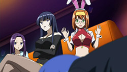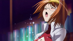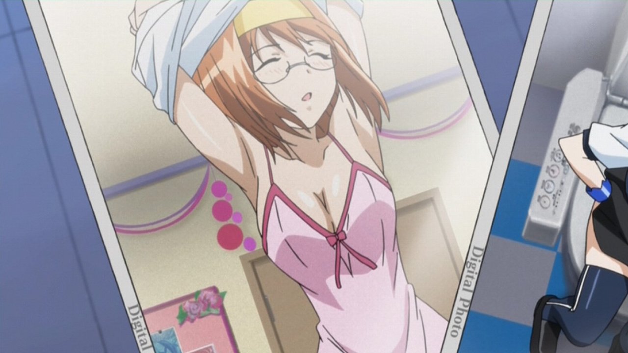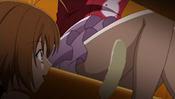 I can’t say I think much of how the whole mixer party came about from Natsuru taking up a part-time job to buy a new bra that can contain her enormous breasts, but that’s exactly the setup laid out for the antics that followed. Aside from Inoue Marina-centered cameos of Rio (Rio -RainbowGate-), Matsurika (Maria Holic), and Mina (Getsumento to Heiki Mina) that took up a noticeable portion of screen captures, the footsies that Shizuku made Natsuru orgasm with were undoubtedly the highlight of the entire episode. The only thing missing was Shizuku taking a page out of Riko’s book from kiss x sis and extending an offer to Natsuru to return the favor. Probably a bit too scandalous for TBS, but I would’ve been on board for simply Shizuku’s dirty talk and satisfied reaction (assuming Natsuru could get her excited enough).