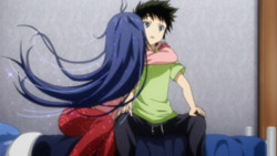 Am I the only one who can’t stand the OP? Every time I hear it, I cringe. Sure, it opens up nicely, and the instrumentals are nice, and SHAFT did a good job with the animation, but THAT GIRL’S VOICE!!!! UGH!!!!! At least in America, people who can’t sing cover it up with electronics (although then again, they do that in Japan more than America). Her voice just sounds like she has plugs thrust up her nose and like she’s singing in a big open room that makes everything she sings echo. Ugh. = A =”’ I DO rather like our main character in this series. I enjoy how he isn’t like most weak male protagonists who are “pure of heart.” He’s a teenager. Teenagers have urges. On the other hand, he also has a mild case of “I must help everyone” syndrome.