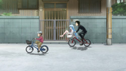 I’m calling it now. Somewhere in the middle of this series. It’s relieved that Erio/Meme and Makota aren’t related. At least I’m kind hoping, then it would make Meme’s actions this episode less creepy.Still good episode, thought the way Makota brought Erio back to reality was a bit extreme. Then again this is an anime and doing things in a sensible way would have been boring. -No a side note: I used to have a bike just like that growing up. Thought i never realized it was the same kind used in ET till long after i stopped ridding it.