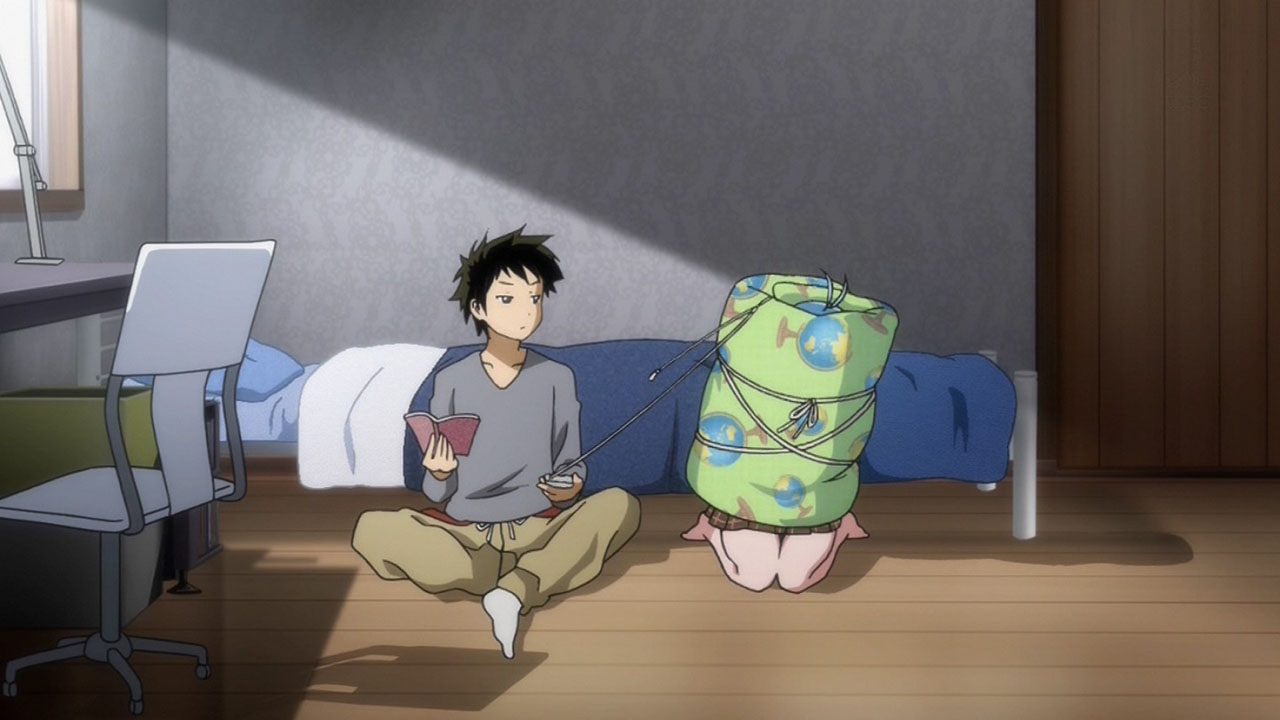 A show about nonsense is okay. A show where the characters can’t even make a conversation make sense, is not okay. Until this point, Makoto and Maekawa were the only ones that could even make any coherent thoughts that I cared about. Meme was close near the end of last episode, and although seemed to have reverted at first, decided to finally spill the beans. Meme’s revelation of why she is the way she is feels like a cheap trick to suddenly get me to like her, because apparently putting a front of immaturity is a good excuse. I especially hate adult characters like this, who act like children in front of our main characters, scold them when they act out, then go back to being hypocrites (Eureka SeveN is a great example). Meme is not nearly as bad, so I’ll bite. She did make me nearly cough a lung out coming back to check on Makoto. What a perverted tsundere (Niwa that is). He should just ravish her in the plethora of openings she gives so casually to teach her a lesson. Tch.