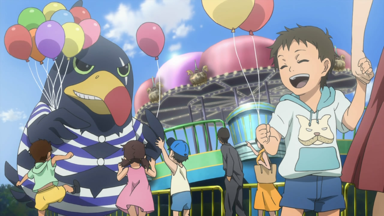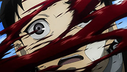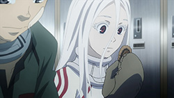 There's a psychotic opening sequence included this week, showing a lot of red and featuring some of the other deadmen, plus a little fan-service for both guys and girls. It fits pretty well with the dark themes in the series and the demented amusement park (even if there's no reason for a costume to smile like that).