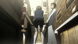 Like the episode before it, the plot is seriously ramping up. It’s subtle, but White Fox is doing a great job with everything. I feel like the studio’s all eagerly waiting (and holding their budget) for the insane parts to come before they pull out their trump cards and wow us with some seriously trippy animation. I’m happy there’s a respectable level of writing and amount of info the show had put into it, and the continual spiral into what appears to be a gigantic scale of a story is intensely promising. The race for the first time machine is on! Please don’t suck, please don’t suck, please don’t suck, please don’t suck…