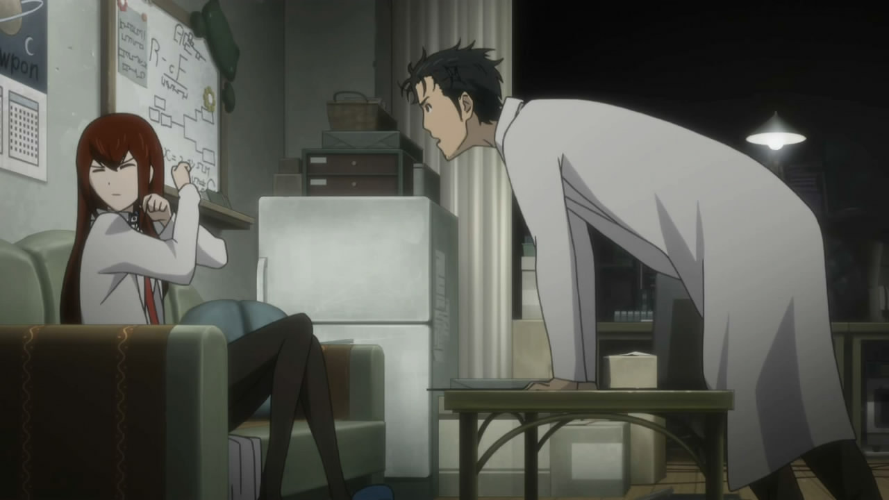 I really can’t get enough of Okarin and Makise, and even with 60% of the scenes just them bickering, I’ve no complaints. Daru’s active imagination never hurts either. There’s definitely more flair to Makise’s tsundere than your average, probably because she actually has some intellect in her comebacks, and yet still reminds us she’s a “fragile” girl. Most of the hilarity this time around came from Okarin finding common ground with Makise with the lab coat shenanigans, and the Dr. Pepper, as if “accepting” her by his standards, which just pisses Makise off to my entertainment. Hmm, I like Dr. Pepper and hope to wear a white coat someday too. I must have been unknowingly participating in intellectual patterns. Okarin’s approval received.