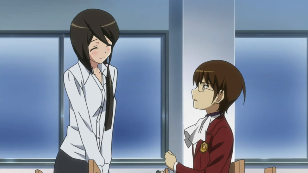 I was thinking the same thing about the situation Keima could possibly get stuck in if he were to talk with her on school grounds. Talking with a teacher outside of school really does make them see you as an equal individual instead of being a student. It’s an awkward but true thing. Keima is too pro.
