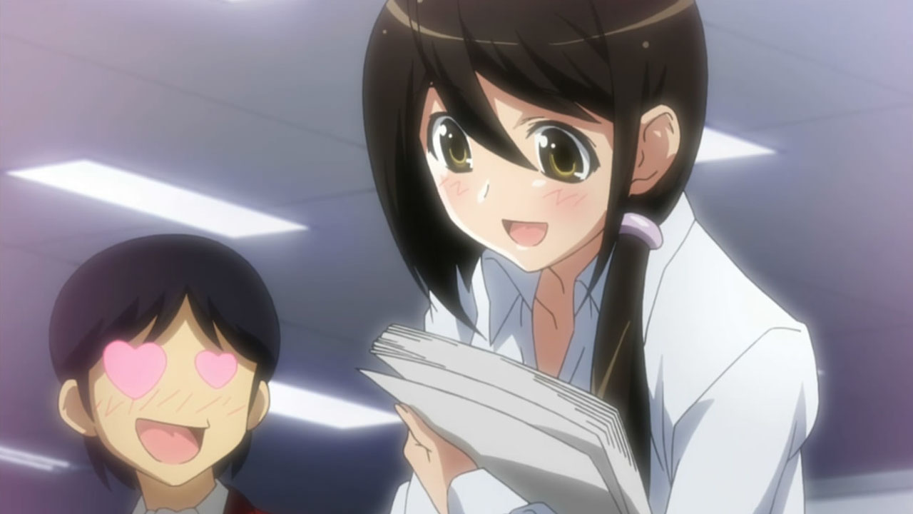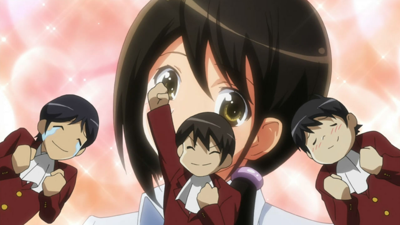 The best part of this episode was the epic 70’s anime soundtrack that played whenever Nagase got fired up. Another highlight was that the studentbody’s reaction to the new teacher was basically “She is so hot and she leaves in two weeks, let’s persue her!”. Looks like Keima has competition.