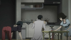 So what the hell? Eating vegetables WORKED? “She” did keep “her” flat chest… despite the glaring clue of Mayushii referring to her as -chan I missed. What a hilarious insult though. I mean, it is pretty harsh if you think about it, calling a flat chested girl who is probably insecure about it a guy? I like how he peeked down Rukako’s shirt, CONFIRMED that “he” was flat chested, and that it was only the crotch region that changed his mind. Flat chested girls should go around with their shirts off to see if they can pull off looking like a skinny guy for science (insert Okabe laugh here). What it means for the plot, I’m not too sure. The IBN 5100 disappeared with Rukako’s D-mail, but most of the reasoning implied the butterfly effect at work, rather than Rukako’s specific changes affecting the outcome. According to episode 4, a man who had knowledge of Okarin’s arrival (Titor or Okarin himself) gave Rukako’s father the IBN 5100. Feyris’ father also owned one, but it’s unknown whether or not that was the one at Rukako’s. Wait a minute, holy shit. I just realized almost all the characters have daddy issues. Makise, Feyris, Suzuha, and now, Okarin (in speculation). It wouldn’t be a stretch to say Rukako’s father had problems with his gender confusion, and Mayushii’s past isn’t so cheery either. I’ll keep it in mind, but the only thing I’m thinking now is the writer having daddy issues…
