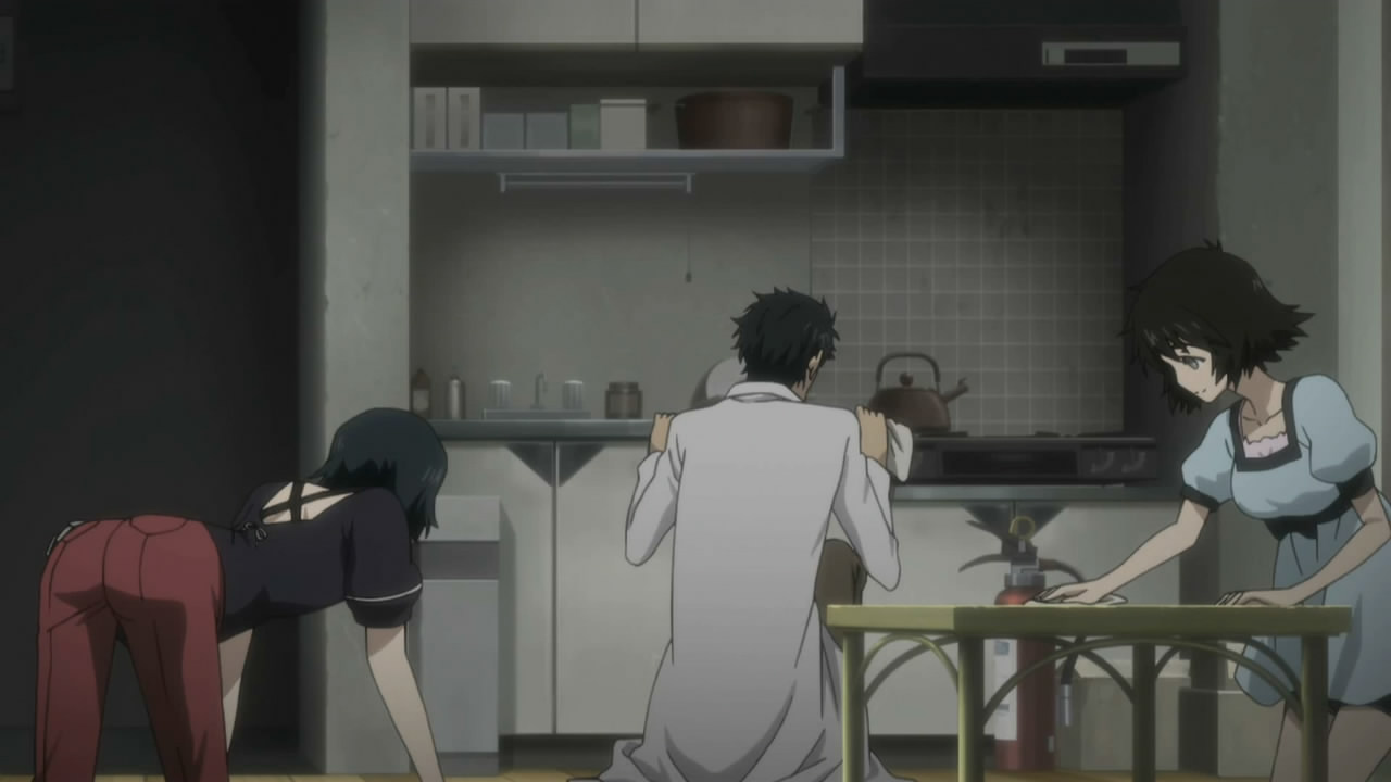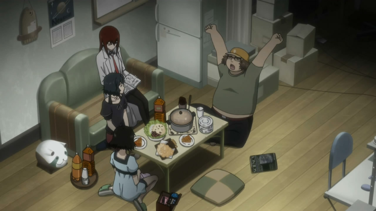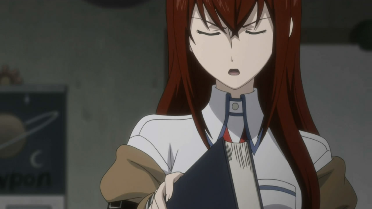 0.337187! We’re almost there! Anyway, probably the last lab member to join, Amane Suzuha, well, joins. Okabe is a pretty nice person, because you’d have to be if you’re going to let people join to help them with their problems by changing time. Feyris’ debacle didn’t faze him after all. Then again, considering his later confession of making the lab to gain some friends, who really knows what he’s thinking behind that mad scientist cover? The sympathy for Suzuha may mean he had a bad relationship with his parents as well, and subsequently came up with the mad scientist persona as a coping mechanism while subconsciously wanting to get some friends (a little counter productive some might say). Maybe such a past somehow brought the reading steiner upon him, wishing star or not. Or, someone traveled back in time and “spiked his drink” lol. But you know, for such a social outcast, he’s pretty lax around girls. Hmm, the mad scientist persona is kind of like faking confide- my god, he’s actually a faux alpha ma- Of course not, a mad scientist has no interest in petty things such as romance.