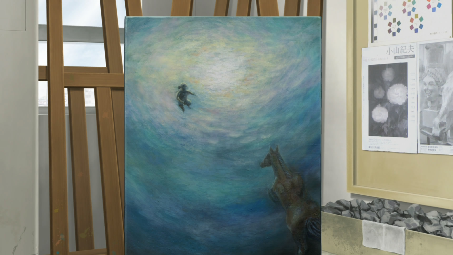 With only the occasional visits from the snarky Purapura as guidance, the soul must navigate the maze of Makoto’s life – and it’s no bed of roses (pun intended). Makoto is small for his age, friendless even before his suicide attempt (which his schoolmates don’t know about), and struggles badly in school (32nd out of 32 in his class). A decent high school seems an impossible dream, he pines helplessly for the beautiful but remote Hiroko, and he alone bears the knowledge of a terrible sin against the family committed by his mother – a mother who helplessly tries to reconnect with a totally remote and hostile child returned from the dead. Only through his painting and sketching did this strange boy find any respite from the troubles in his life.