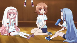 But really, this show is all about cute little girls and showing them off. It probably tells you all you need to know about this show that the girls decide to greet their new coach dressed in maid cosplay and call him “Master”. When that doesn’t work, they switch to “Onii-chan”. There’s not too much pretense about the fanservice here – there’s lots of it (though some of it fairly innocent) and the girls are awfully young. Character designs are over-the-top cute, which either helps or makes it worse, depending on your POV.