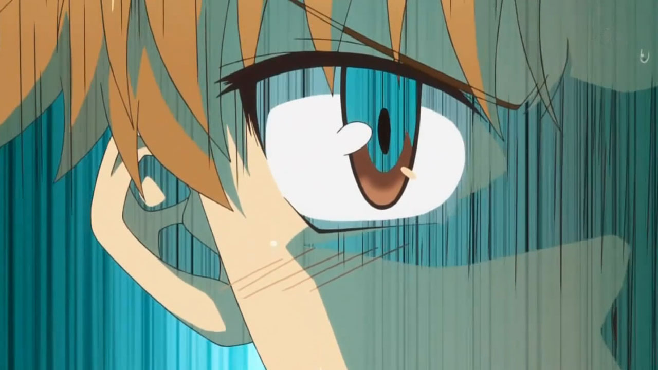 The unique animation is what I really love about this show. The chibi forms, the black&white Yuuji scenes, lots of nosebleeds, the faceless background characters and this weird ass view is just so Baka to Test.