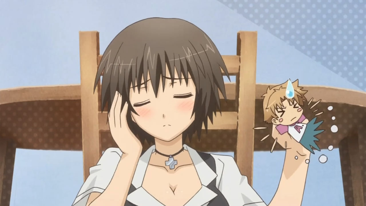 After getting past the fact that Hideyoshi is actually a guy, I noticed how much I missed listening to Shimono Hiro voice our main protagonist Akihisa. Besides wondering if Elsie might pop out from the shadows somewhere, it does feel a bit strange hearing Shimono’s voice without extra otakuish words coming out. Then again his voice seems perfect for Akihisa, the dumbest but boldest of the bunch. But who could forget the budding rivalry between Himeji and Minami? While I’m usually on the tsurupettan side of things since they usually have something outstanding that makes up for the lack of a chest, Himeji’s charm is hard to deny. Plus when they team up against Akihisa, it’s hard to pick which one to root for! Then there’s Shouko’s violent leash on Yuuji which never fails to crack me up. Especially when she gets funny ideas. Finally there’s Tsichiya rounding out the bunch with his handful of cameras and infinite nosebleeds.