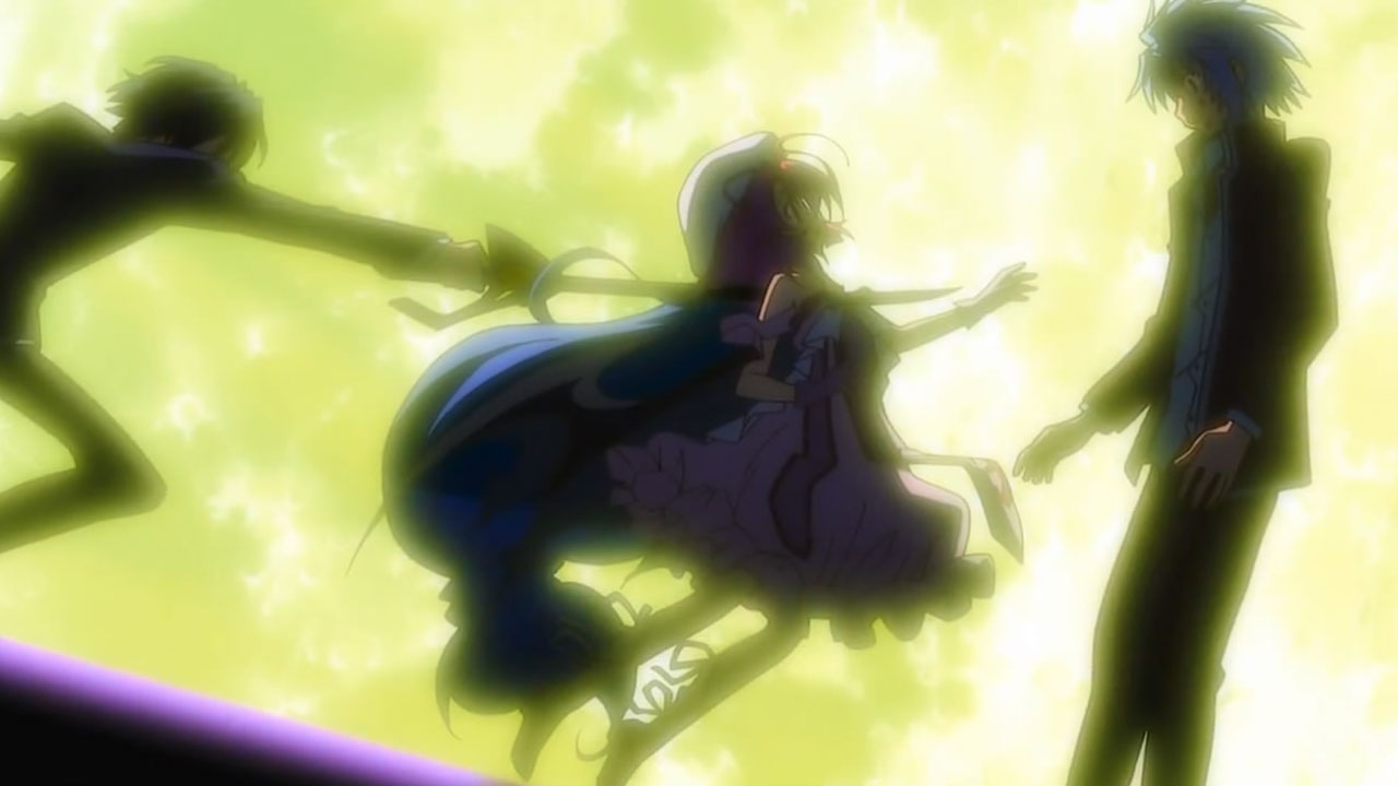 Which is why I’m confused on how we’re supposed to deal with Himea (Takamoto Megumi) — some kind of vampire magician that can change her physical form to her liking, who has apparently been sealed away for 9 years, and made a permanent pact with Taito by filling him with her “poison”. While the problem at hand would be the fact that she got stabbed straight through her gut only minutes after finally meeting Taito, I’m more interested with how Taito’s going to deal with two girls trying to grab his attention. Thinking about how he could literally get ripped to pieces in the process makes me chuckle a bit.