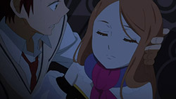 Along with Ringo’s diary, one of the biggest mysteries to me is still the whole penguin theme. An obvious effect is that it keeps us guessing on what the penguin drum truly is, but I suspect there’s a much more meaningful purpose behind it — more than just being Himari’s favorite animal anyway (presumably). Until we learn more about that, I am enjoying the cute and comedic moments care of the invisible penguins, whom Ringo doesn’t even take notice to when plates of curry are being eaten right beside her. As for Ringo’s herself, it’s kind of relieving to learn that she’s known Keiju for some time now and didn’t just start stalking him out of the blue. Knowing that makes it easier to understand where she’s coming from, and even allows me to take amusement in Keiju’s girlfriend Tokikago Yuri (Noto Mamiko) being suddenly introduced and ruining her curry day plans. However, Ringo still comes off as a pretty crazy stalker girl to me, especially when she grabs a pot off a burning hot stove with her bare hands.