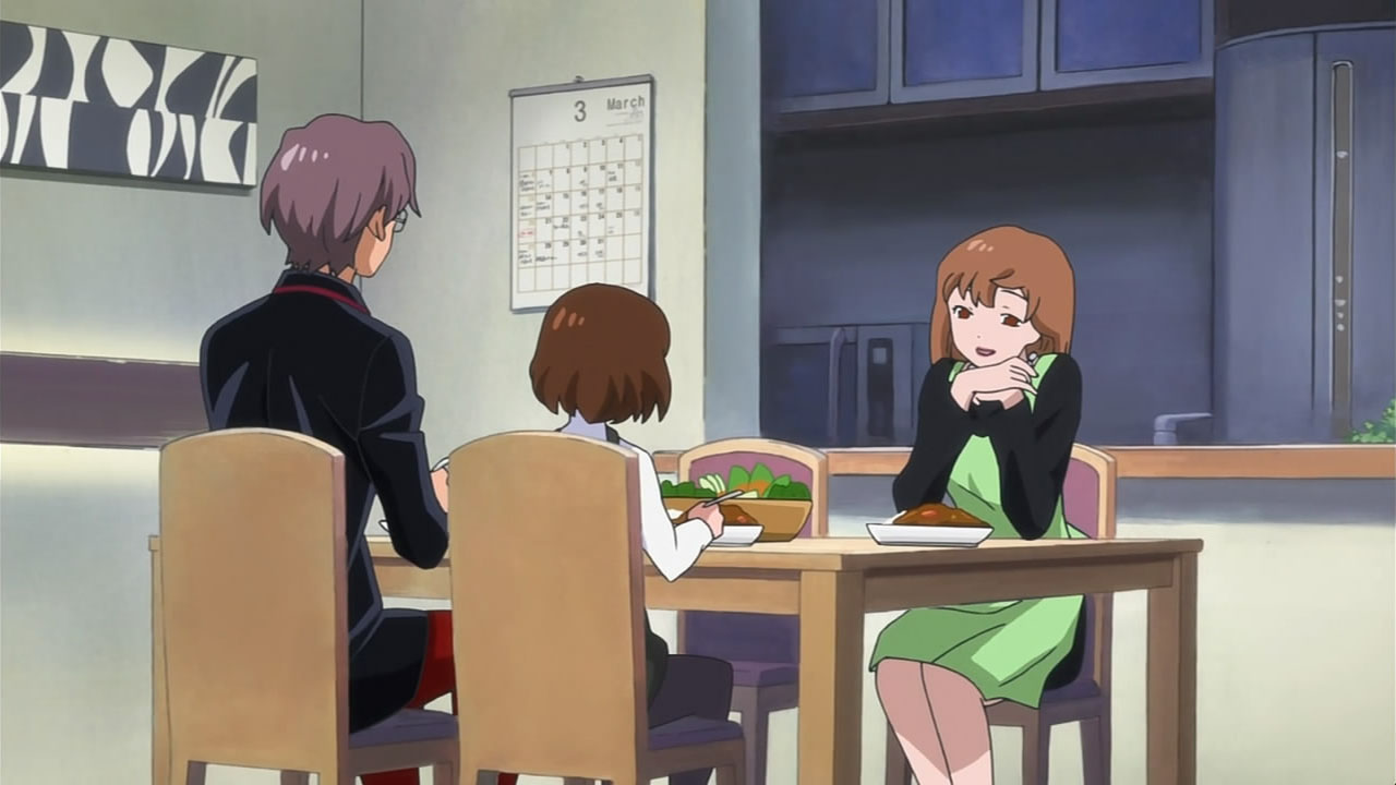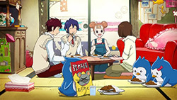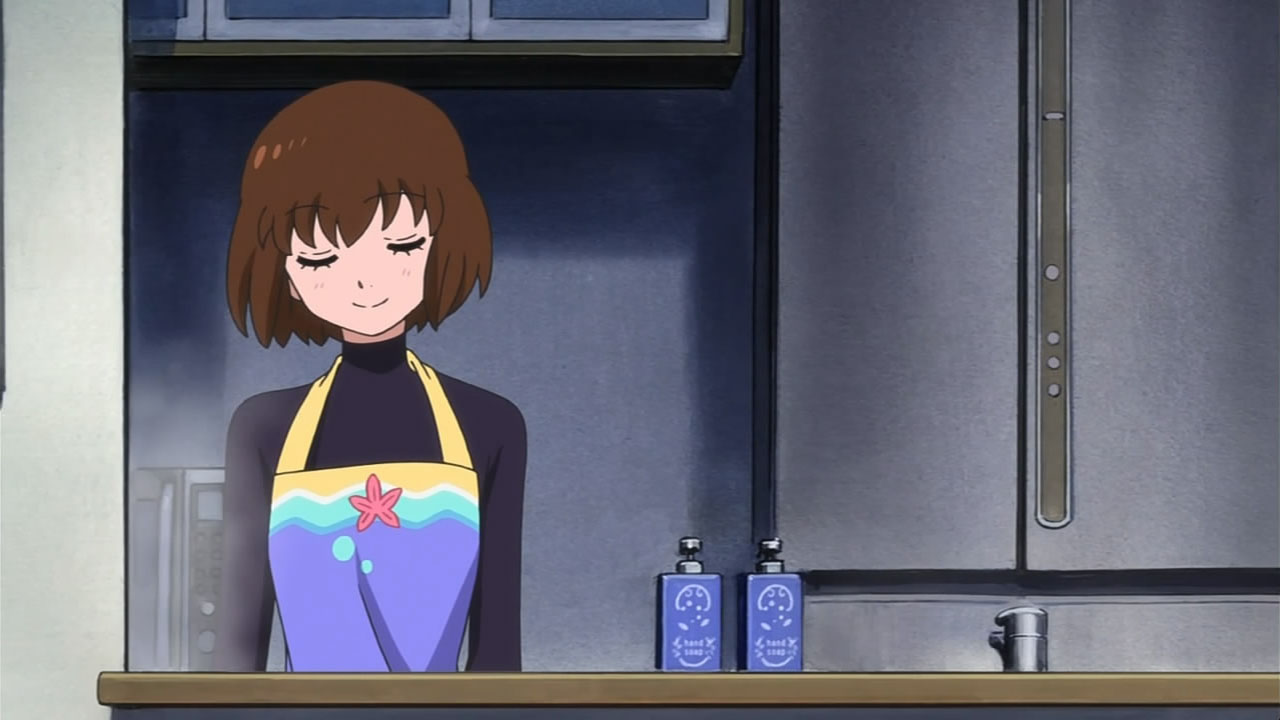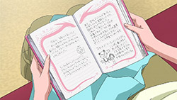 In addition to the introduction of Ringo’s mother Eriko (Fukami Rika) and the sight of “Himari” in a cow suit chugging away milk like a champ, the most interesting thing to take away from this episode is that Ringo’s diary doesn’t seem to have the future written in it. Instead, it appears to be a plan she outlined in a lot of detail and attempts to make happen as closely as possible. She also seems content if she can twist the wording around so that it’s still technically true even though it’s not what she hand in mind, such as her and Keiju eating her home-cooked apple curry together. Incidentally, “eating together” doesn’t necessarily have to mean at the same table, as eating a new batch she made at the Takakura household still qualifies in her mind. I haven’t ruled out the possibility that something will happen if she succeeds in fulfilling out her “destiny” though, assuming that her diary is the penguin drum in question. Whatever the penguin drum is, it’ll be interesting to see how Kanba and Shouma try to get it from her now that they can actually talk to her. It was like a blessing in disguise when Himari invited her over. A very, very, disguised blessing.