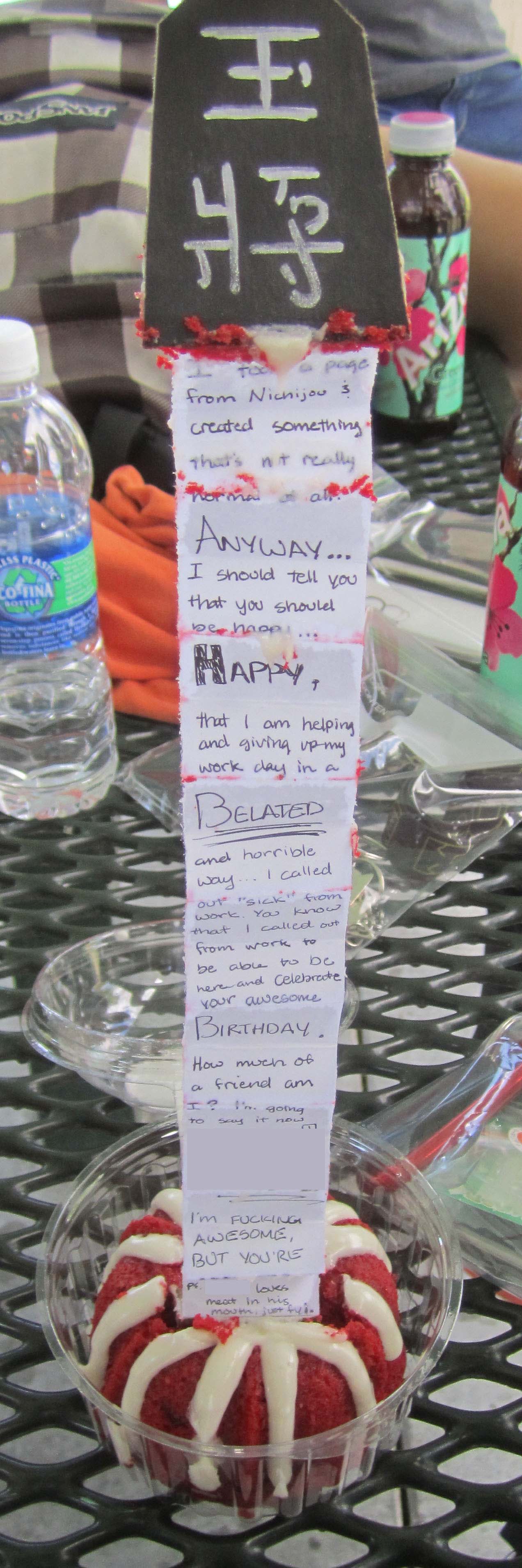 BTW- T…do you really like “meat in your mouth” lololololol just fooling! that looks like a message from a true friend, Happy B-day yo