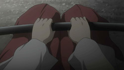 The episode was revealing about the characters, and not just the simple fact that they’re seemingly all virgins (which busts the theory that Okarin slept with Feyris-nyan last week). Possibly the highlight of the episode was watching Kurisu obsess over the very notion of Okarin dating another girl while pretending not to care (which she seems to be getting worse and worse at). Not content to micromanage every aspect of the day from a first date how-to book, right down to shopping for Okarin’s date outfit from Uniqlo – no doubt wishing it were her own dream date with Okarin she was designing – she actually drags Daru along to follow them. And we got a chance to see Ruka in the spotlight for the longest stretch of the series. Boy or girl, Ruka is a kind and tortured soul – there was never any doubt (s)he would agree to send the D-mail. But the desperation of the moment actually gave girl Ruka the courage to go all Carpe Diem on Okarin, which was a sad irony indeed.
