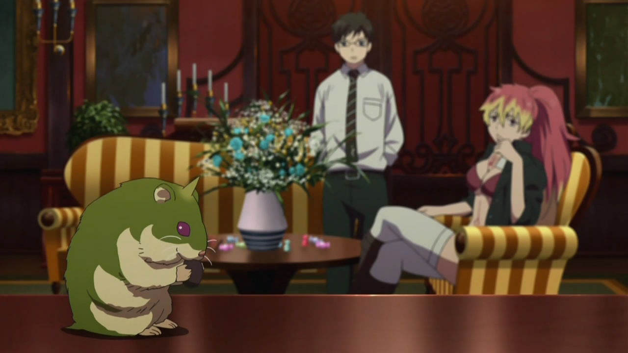 I liked this episode even though it was a filler created by the writers. They wrapped up the whole “I do not like Rin because he is Satan’s son” pretty quick which was great because I could not stand it if it was dragged on for the next six episodes. I particularly enjoyed the Anaimon hamster and Ryuji’s expression when he said that Rin had nothing.