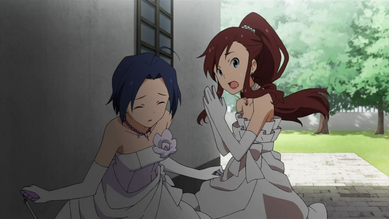 And I was expecting Makoto to save the bride in distress, but Azusa’s air-headed charm would do as well. Besides, the yuri-fan in me would rather Makoto save Miki. (Sorry Makoto x Yukiho shippers)