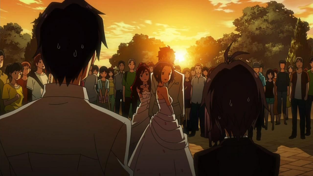 Bonuses of course, coming courtesy of cute girls looking outstanding in their wedding attire, Miki being Miki, Azusa being just wonderfully charming, and Makoto kicking more ass than the whole UFC.