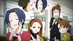 This whole episode reminded me of an 80s movie comedy sort of style. So many movies like that with Steve martin or John Candy, Mel brooks even. I loved it it was really great at the end with the big group running the steps and they played that comical background music. All with Asuza seemingly oblivious to the massive crowd in the back. The expression on Makoto’s and producer’s face was priceless as well. LOL Ah man, it’s like every other episode is a mini movie. Well written. Good pacing it doesn’t even feel like a under 30 min show it always seems like there’s so much happening. I’m glad Idolm@ster is stil being looked after for now. I can see why Ro-Kyu-Bu had to go it’s really coming loose in the story dept. A lot of loose ends, unexplained moments.