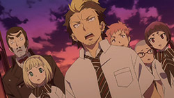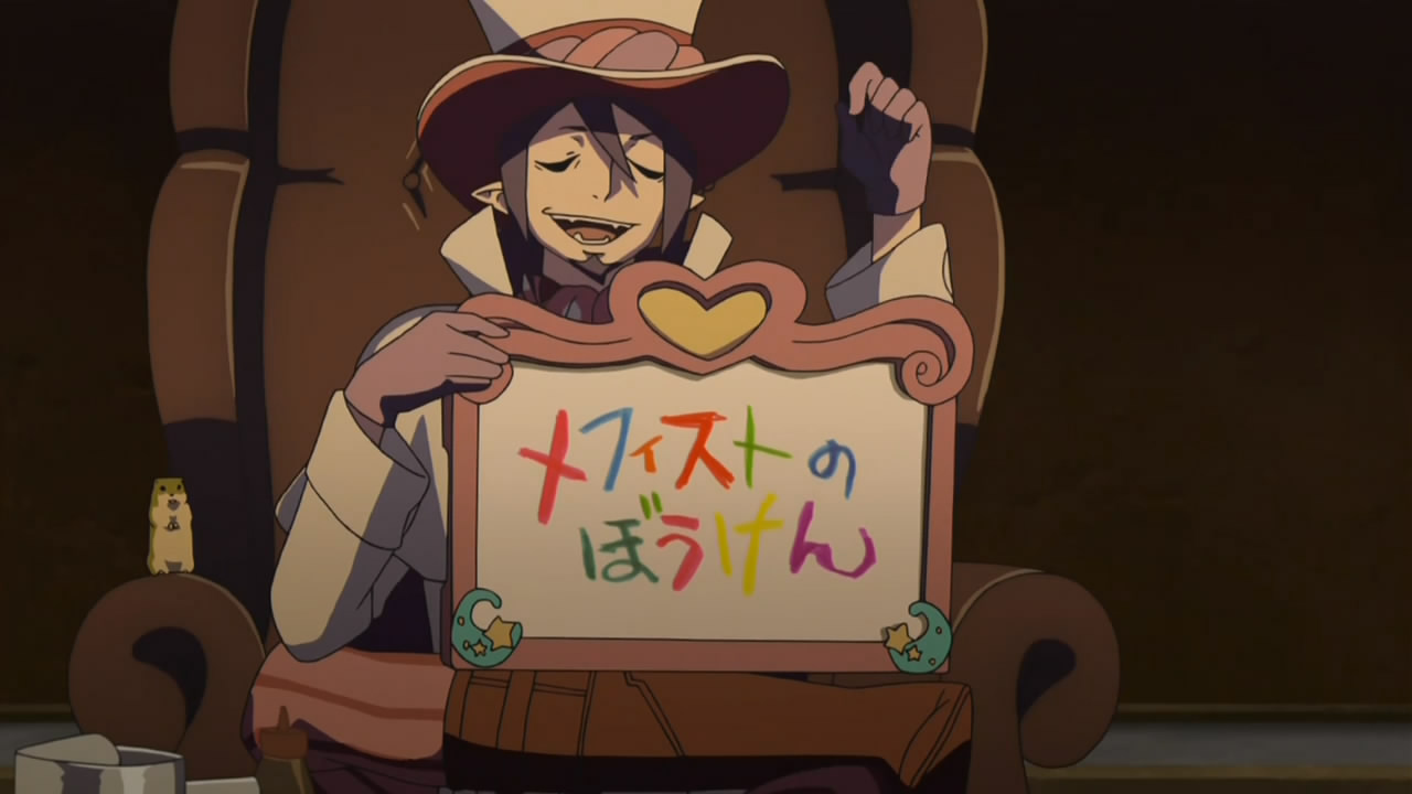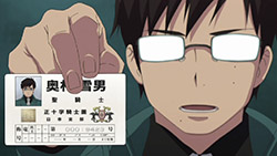 All this is a really good story, in my view – a very interesting twist on the manga plotline and an effective extension of the existing character arcs. The prospect of seeing the child exorcists turned into butchers was every bit as bleak and disturbing as it should have been, and it did an effective job of blurring the lines between good and evil (which were already pretty fuzzy in this series). I just wish it had evolved more organically instead of being shoved down our throats with extreme prejudice. There are three episodes left, so perhaps there’s time to wrap this up in something resembling measured style. Rin is obviously not dead – I mean, come on – and of course Mephisto is still out there, having turned into his Dr. Seuss dog form and escaped the Vatican’s dungeons (leaving Rin behind, I might add – but any dungeon with takoyaki can’t be all bad). I can’t imagine Gehenna being destroyed would do his prospects any good, and he doesn’t seem like the type to accept fate with grace and resignation. And then there’s Shura, doing battle with AAA (is he still a Paladin, with Yukio promoted?). I’m especially interested in their battle, as it appears to present the possibility of his toupee being forcibly removed.