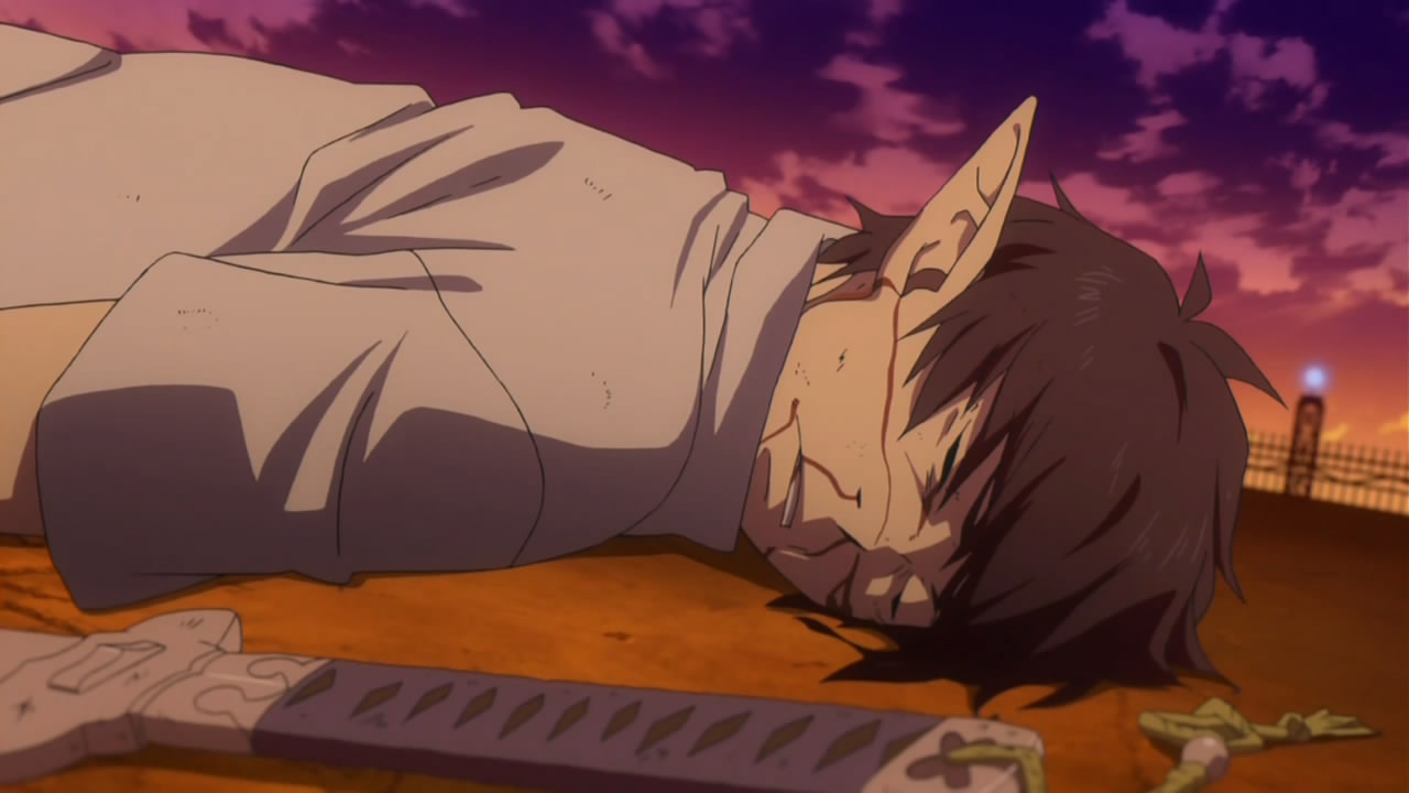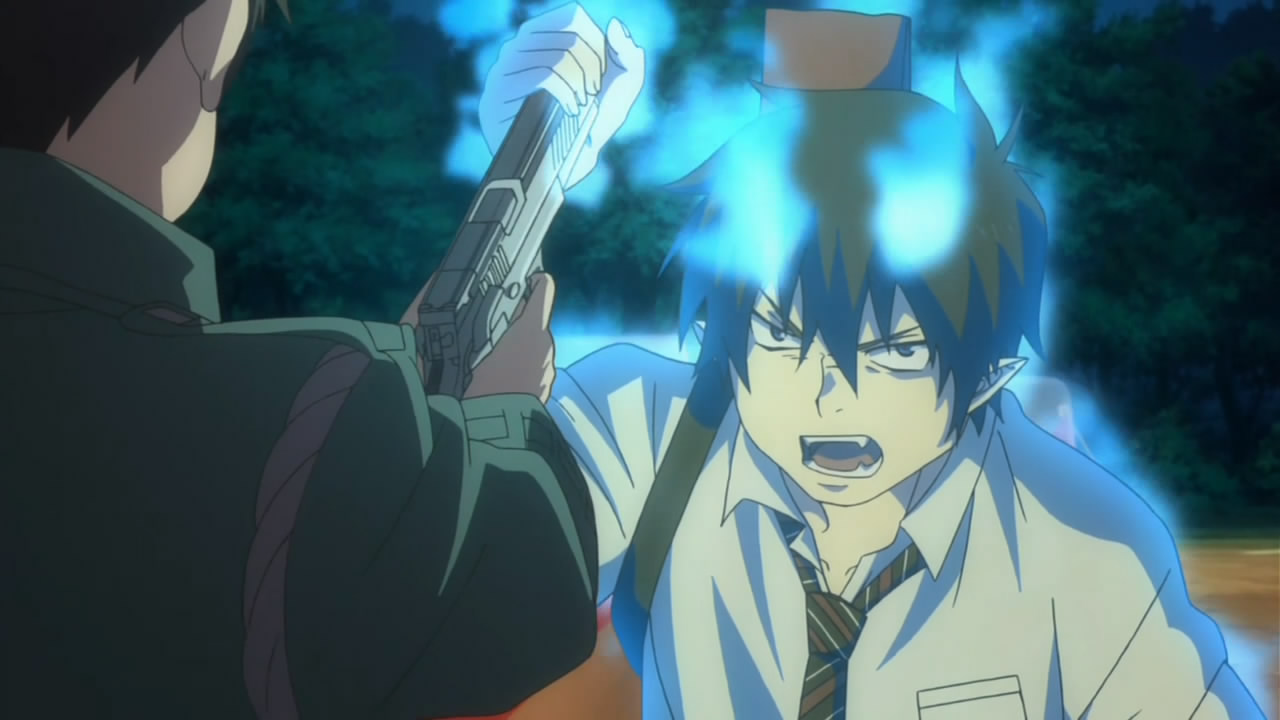 I must admit I was disappointed by the rushed pace of it, especially given the slower pace of the anime overall. Yukio’s character development did have some foreshadowing, but like you said, to just go completely cold as to try and kill Blackie, bit of a stretch to willing suspension of disbelief. I also would have liked to seen Rin push Yuki more when he said that he’d exerminate all demons, ask him whether he’d be willing to kill his own brother, for dramatic sake if nothing else. Though a few of the flash-forwards annoyed me the most. For example, Rin being taken out of the dungeon to the cross thingy, you can’t tell me he didn’t put up at least a bit of a struggle, or if not, why? Lied to like Yukio (which is inferred I suppose), knocked unconscious or something just would have been nice for flow sake. And the flash between Yukio being normal then wreathed in blue flames, though next episode should sort to that, so I look forward to that.