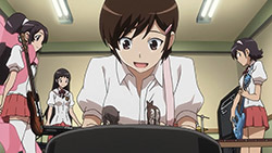 There have been a lot of references to other shows in Kami Nomi, but this OVA takes the cake in the overall number of references that were made. So if it wasn’t clear what light music club the show was trying to reference, let me just list out a few of the obvious clues. Four girls trying to start a Light Music Club, Ayumi (Taketatsu Ayana) getting pumped up about being a motivated musician, and an anime highlighting a certain girl with iconic pigtails should have been more than enough to get that K-ON vibe.